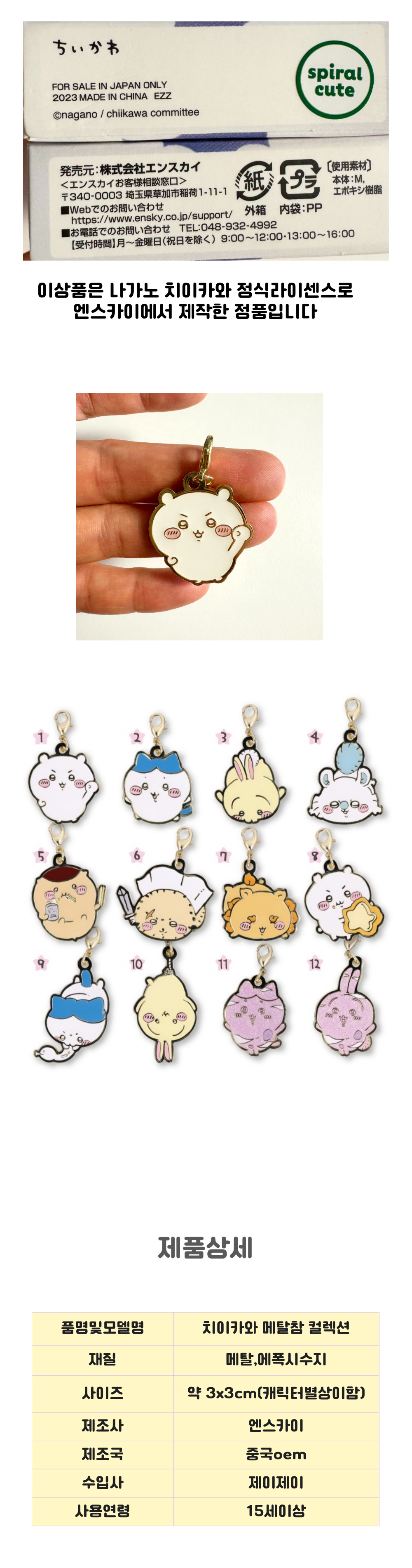 파우치나 에어팟케이스등에 달수있는 먼작귀 치이카와 매탈참 장식고리컬렉션