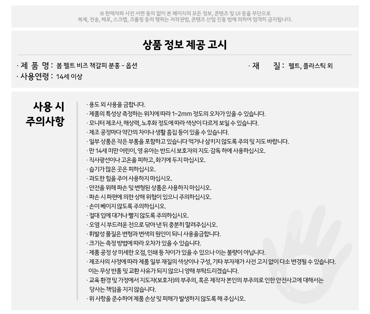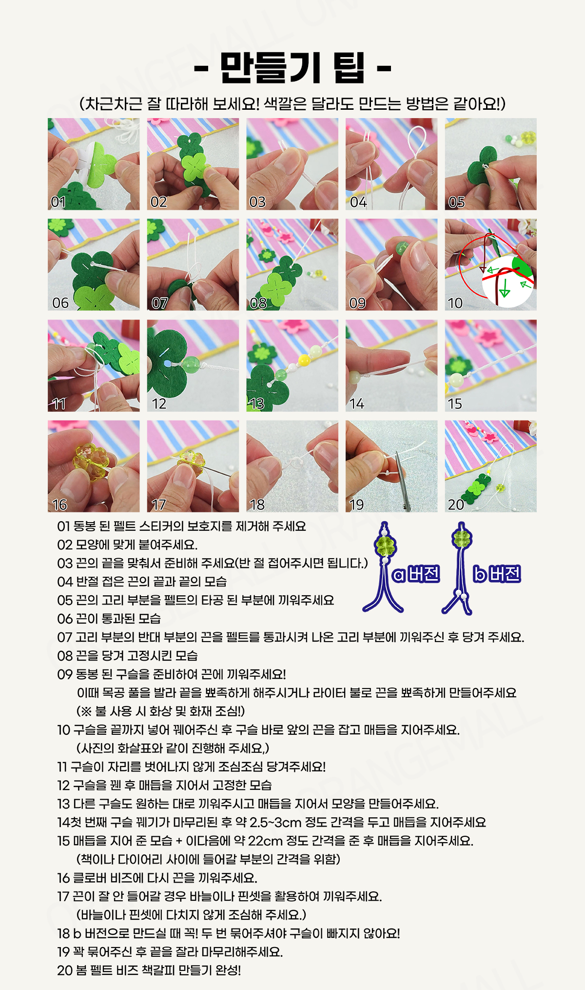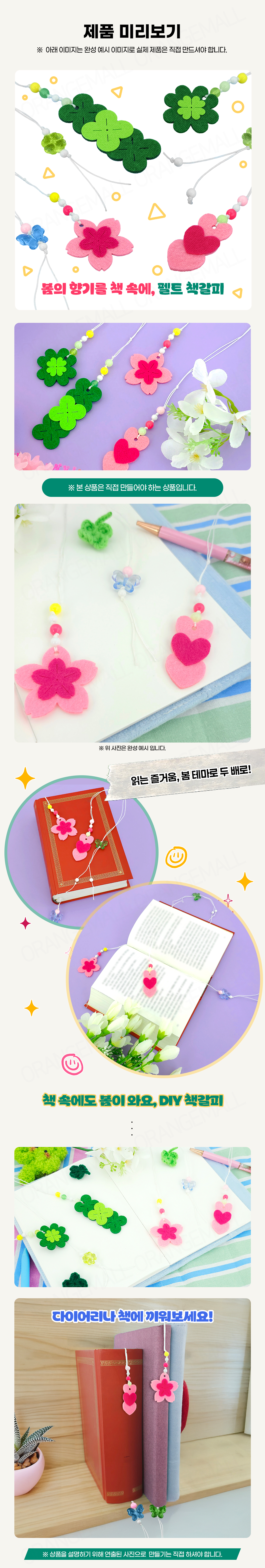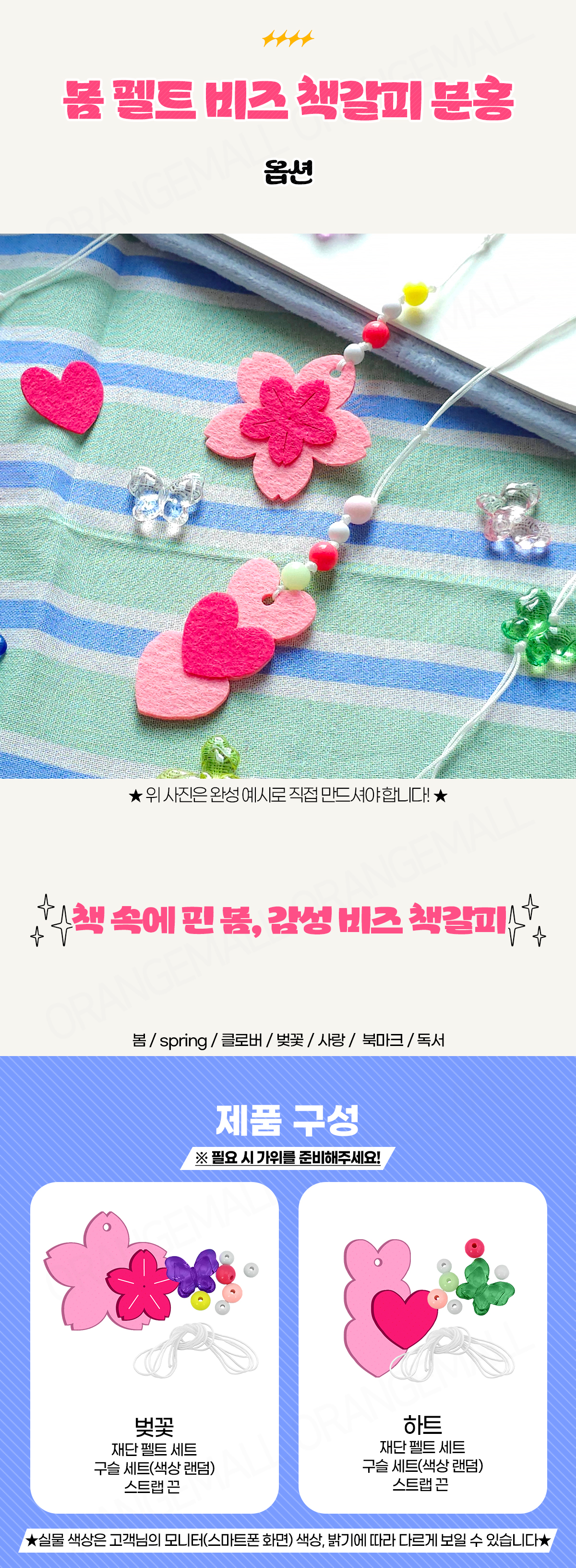 봄 펠트 비즈 책갈피 분홍 - 옵션