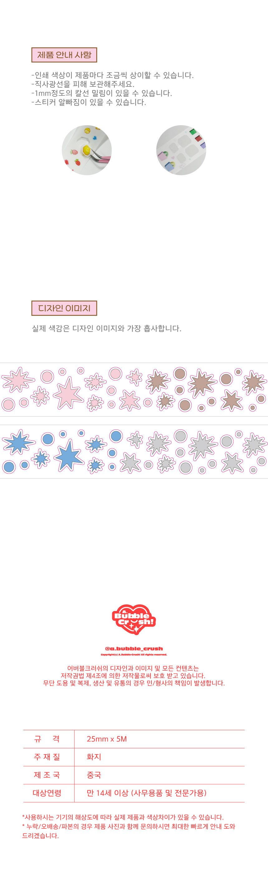 *제작시마다 지관의 사이즈가 달라질 수 있으며 이에따라 지관이 라벨의 지름과 비슷할 경우 배송,재고보관 과정에서 라벨이 구겨질 수 있습니다. 이는 불량에 해당되지않습니다.