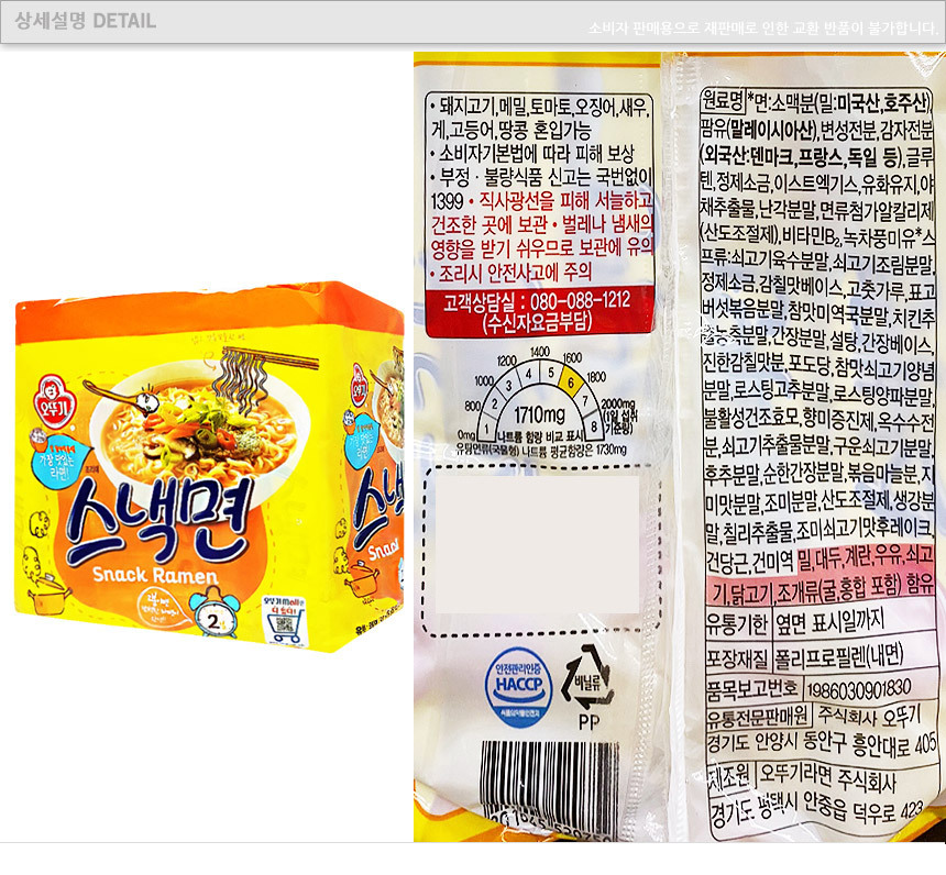 오뚜기 스낵면 108g 5개입