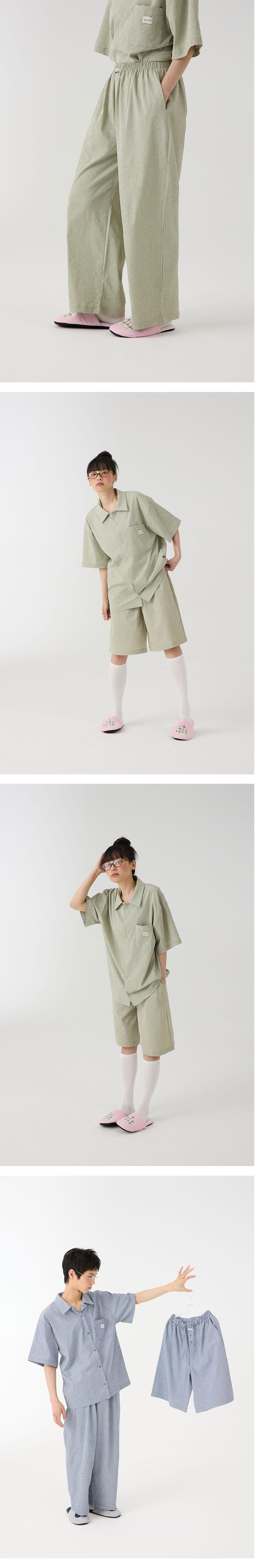 빈티지한 무드의 시원하고 가벼운 파자마 숏 팬츠입니다.
