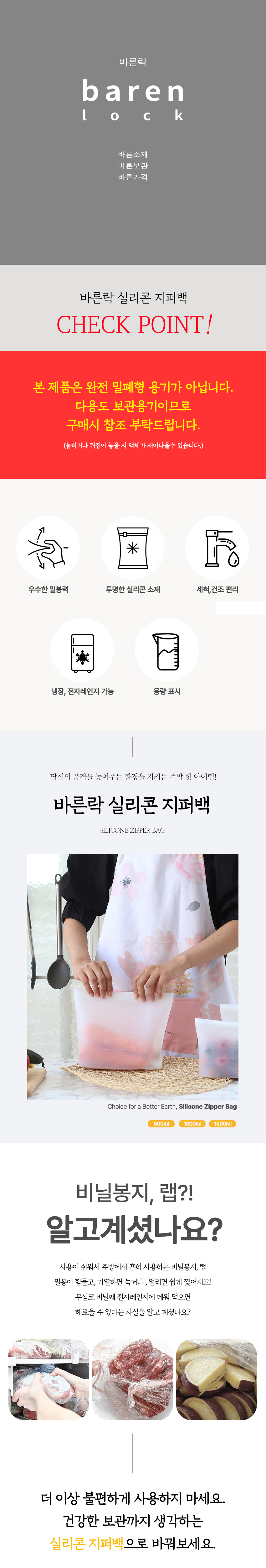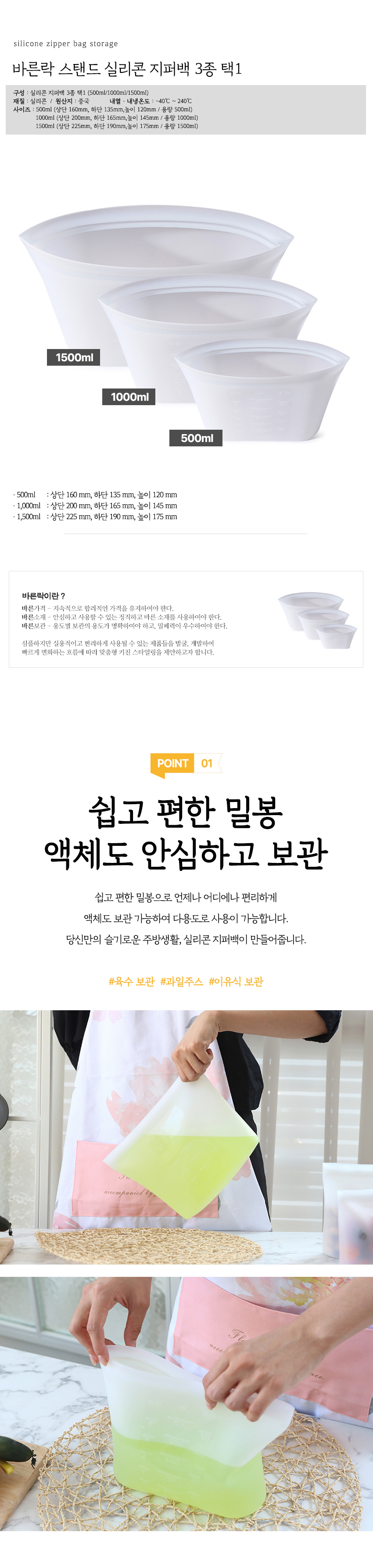 바른락 스탠드 실리콘 지퍼백 3종 택1