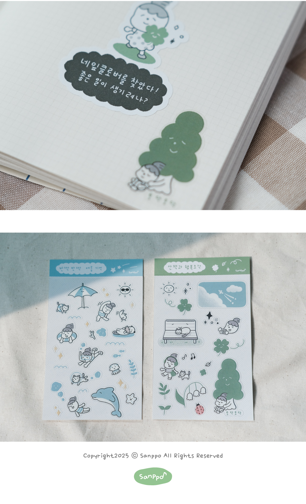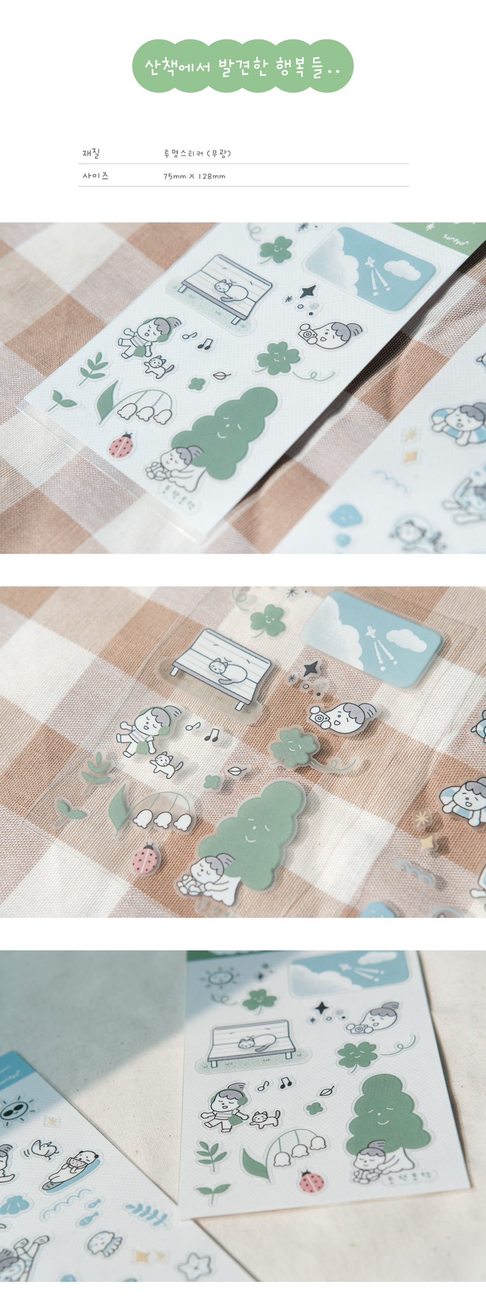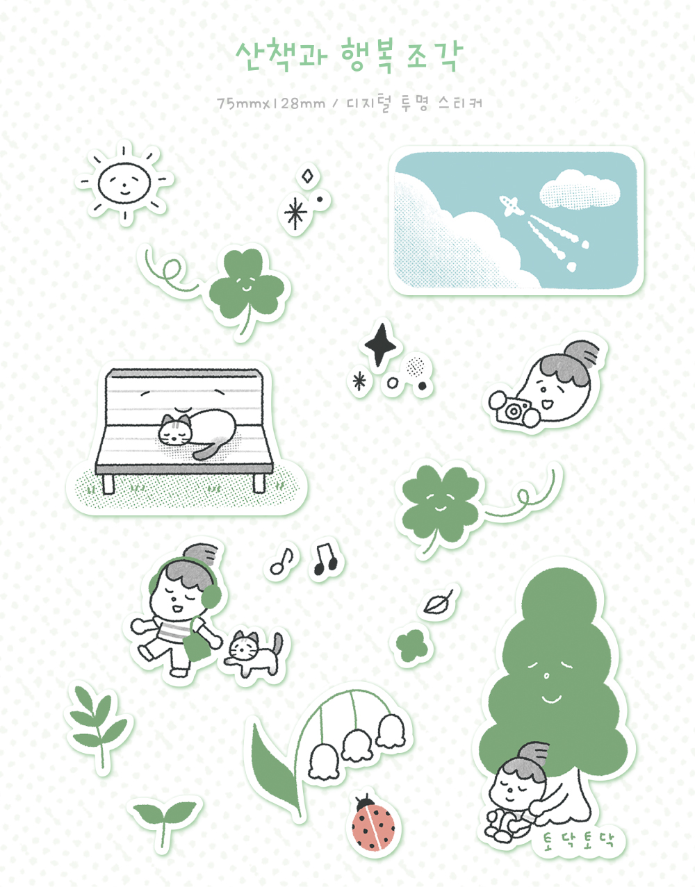 산책 중 발견한 행복들을 담아낸 투명 씰스티커입니다.
