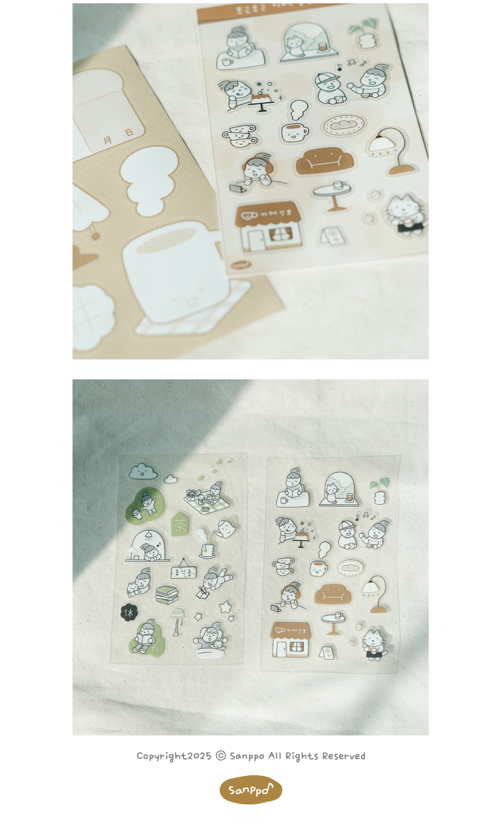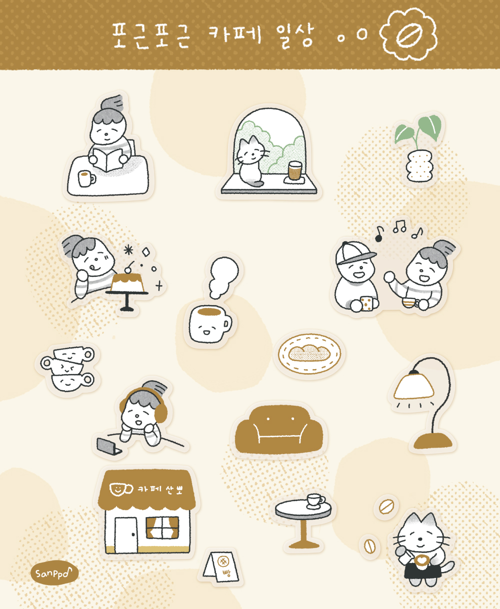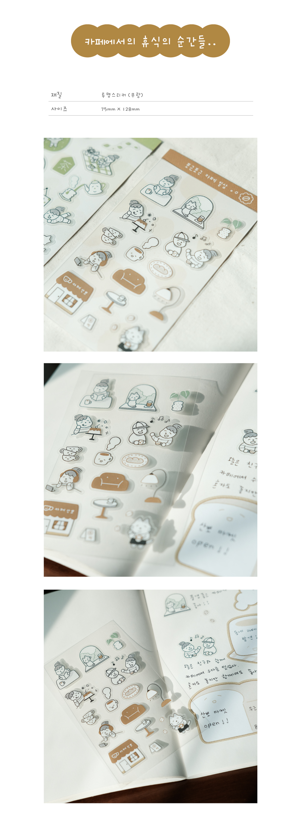 카페에서 즐기는 휴식의 순간들을 일러스트로 담아낸 투명 씰스티커입니다.