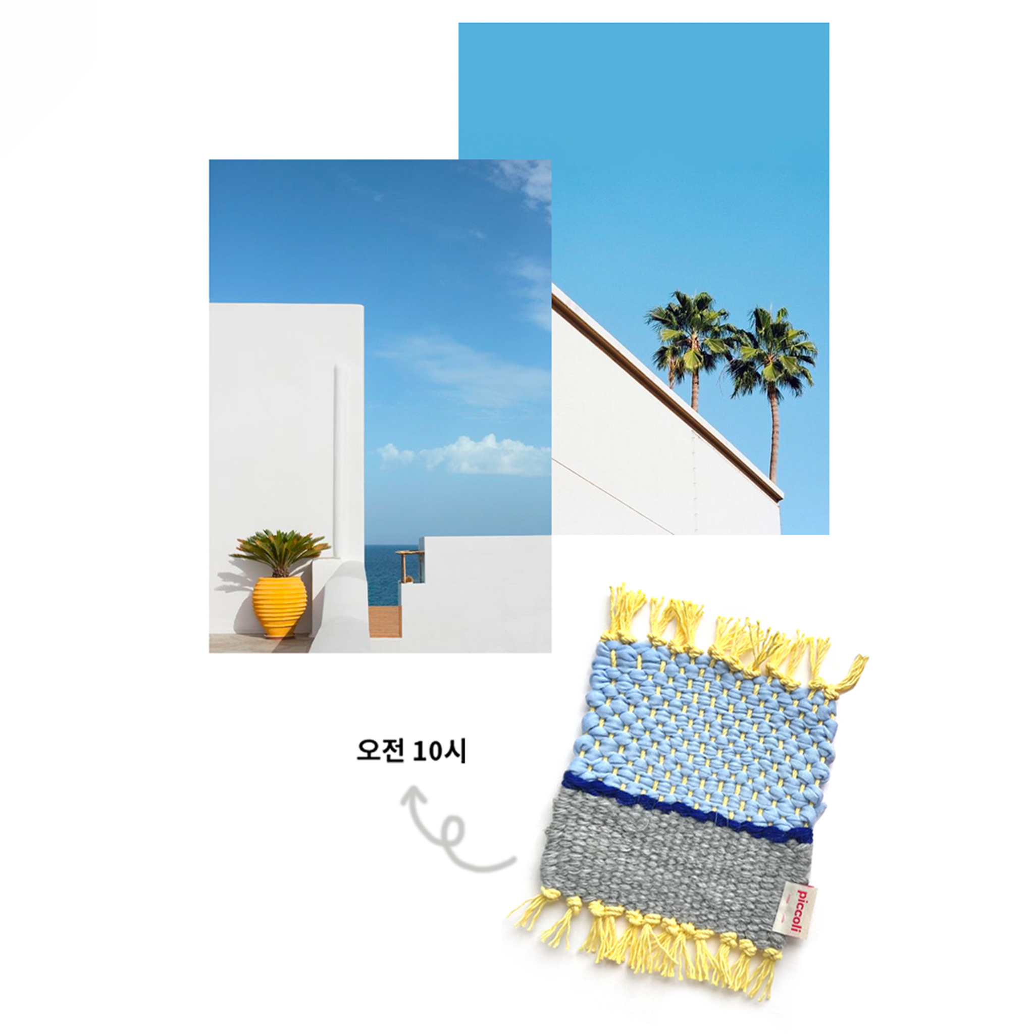 | 아름다운 지중해 바다의 수평선을 떠올리며 만든 삐꼴리의 코스터 시리즈에요. 쉽사리 떠날 수 없는 먼 곳이지만, 테이블 위 한 켠에 지중해의 색감을 들여놓기만 해도 기분이 좋아진답니다! 생각만해도 설레는 지중해의 시간으로 데려가드릴게요. piccoli means small, that's where love begins. 소재: 패브릭얀, 램스울, 특수사 사이즈: 11 x 11 cm (핸드메이드 특성 상 오차가 있을 수 있습니다.) 제작기간: 3일~7일 *주말, 공휴일 제외 |