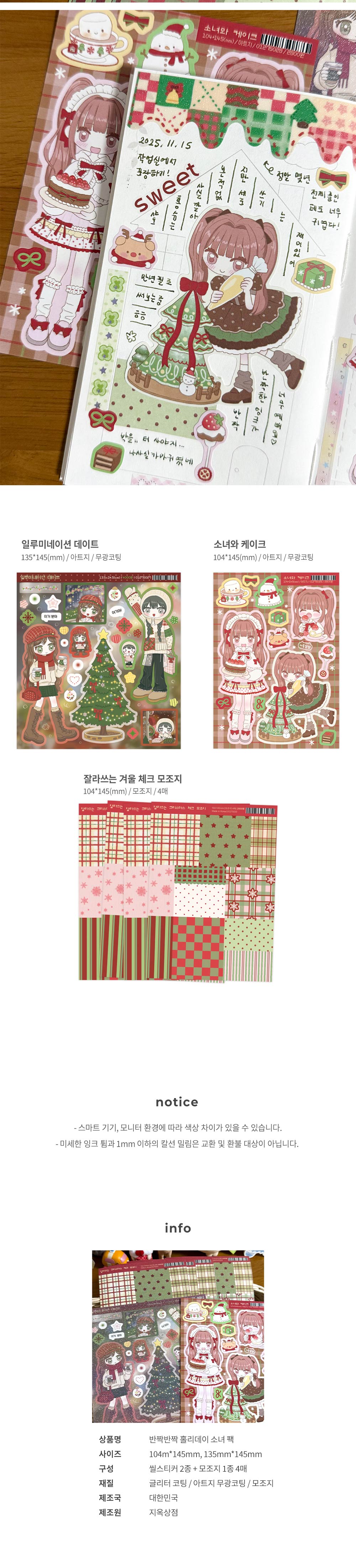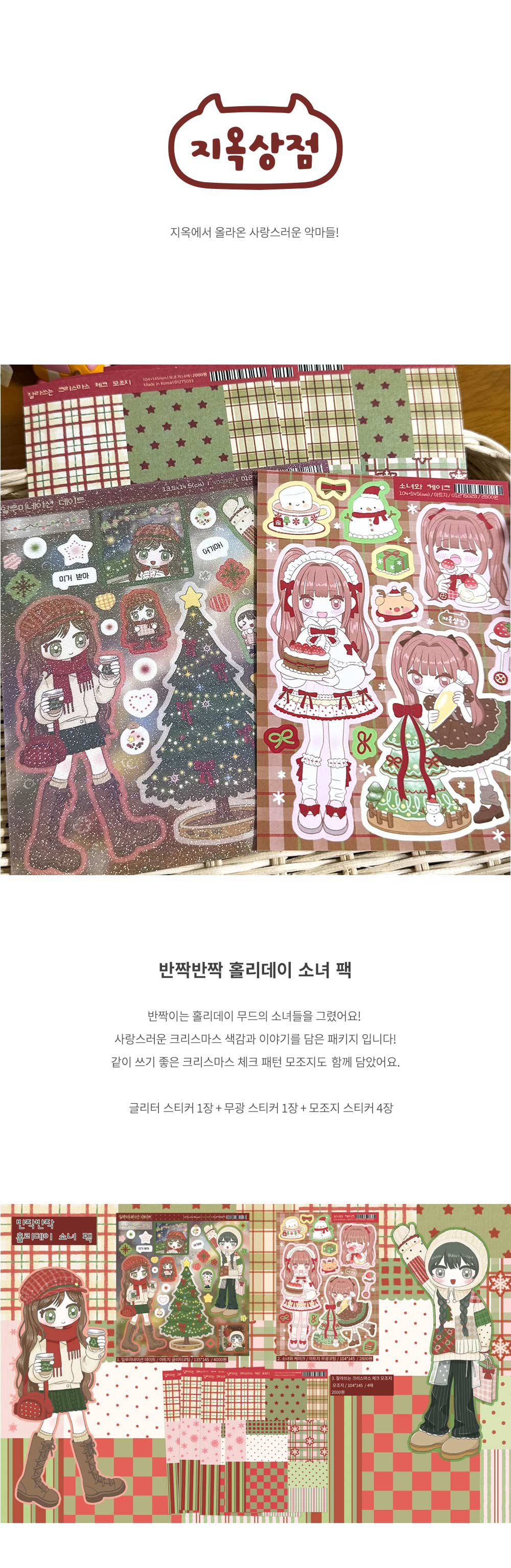 글리터 씰스티커 1장 + 무광 씰스티커 1장 + 모조지 스티커 4장