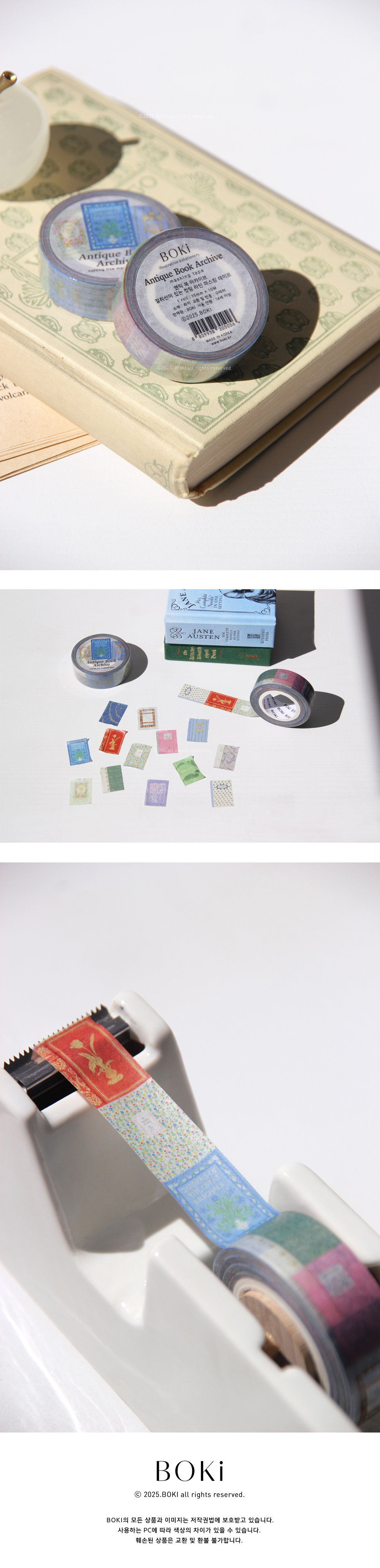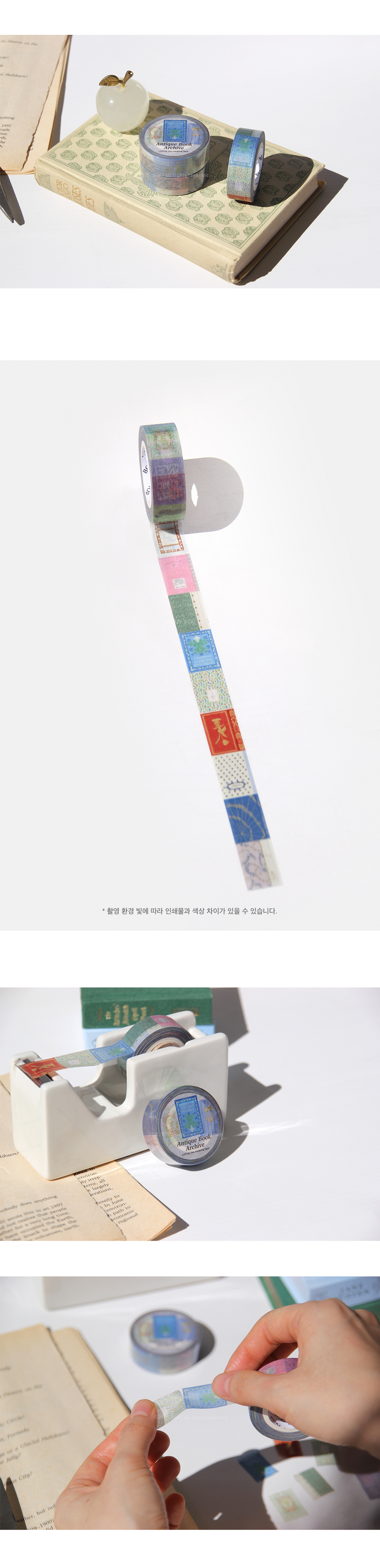 | 앤틱 북 아카이브 절취선이 있는 컷팅 라인 마스킹 테이프 13권의 빈티지 책 모티브를 그려 넣었습니다. 절취선이 있어 손으로 쉽게 뜯어 사용할 수 있습니다. 15mm x 10M / 화지 Made In Korea 정방향 디자인 재단 기술의 특성상 모든 디자인은 0.5mm - 1mm의 재단 오차가 있습니다. 2024년 11월부터 국내 생산분은 기존 우레탄 성분에서 일본 오리지널 브랜드와 동일한 아크릴 성분으로 변경하였습니다. 코팅된 종이, 비닐, 플라스틱 등의 소재에서도 들뜸없이 오래 부착되어 있도록 강도를 개선하였습니다. |