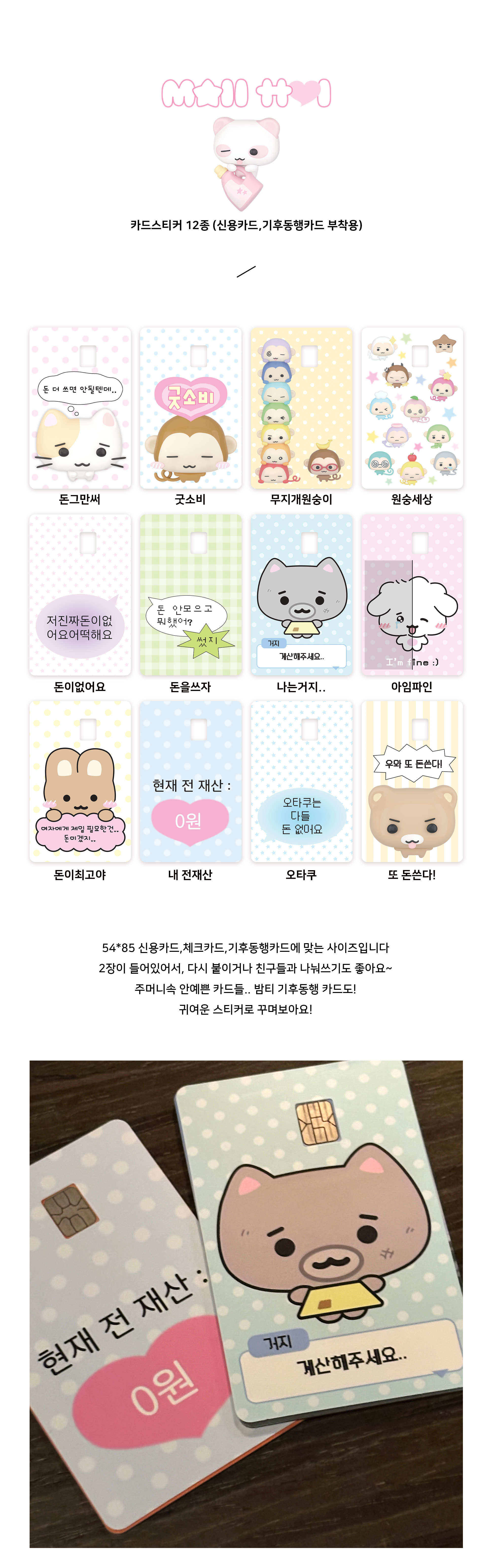 54*85 카드에 맞는 사이즈입니다! 각 옵션당 2장씩 들어있어요