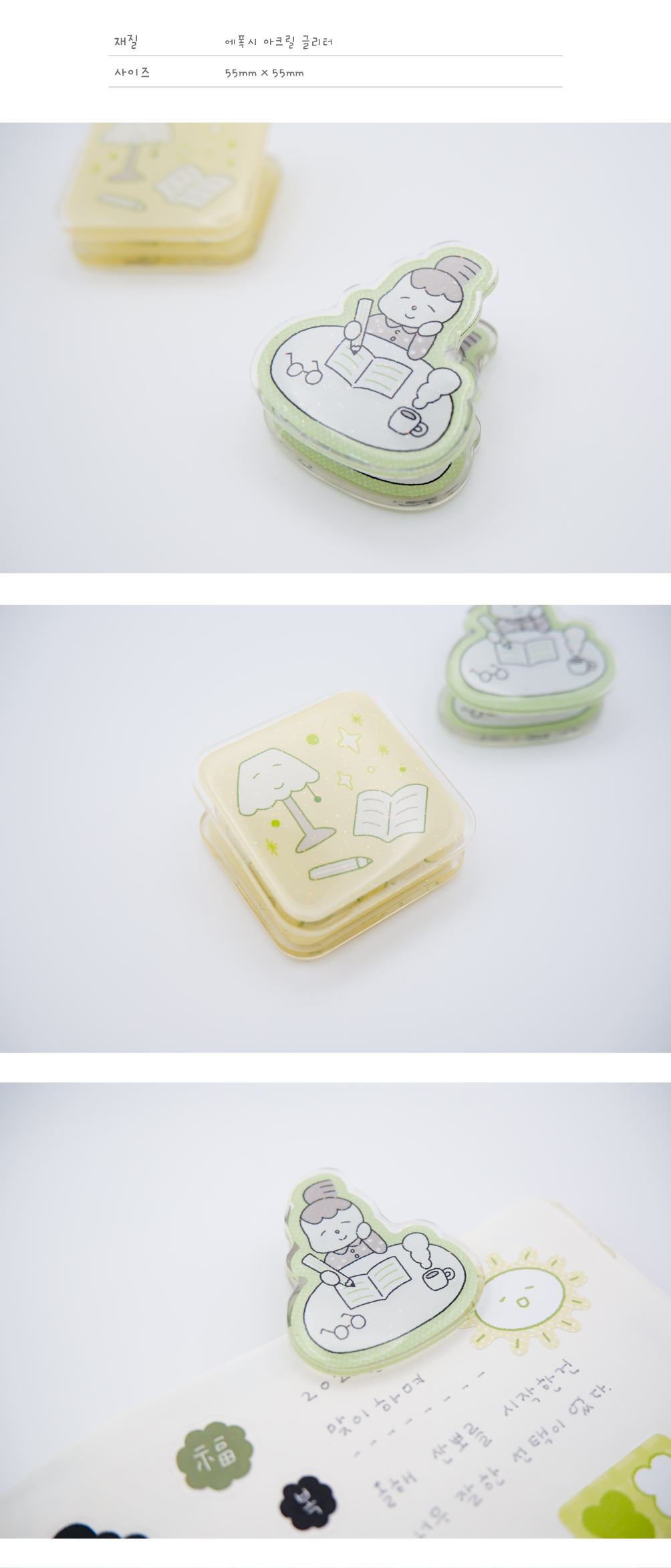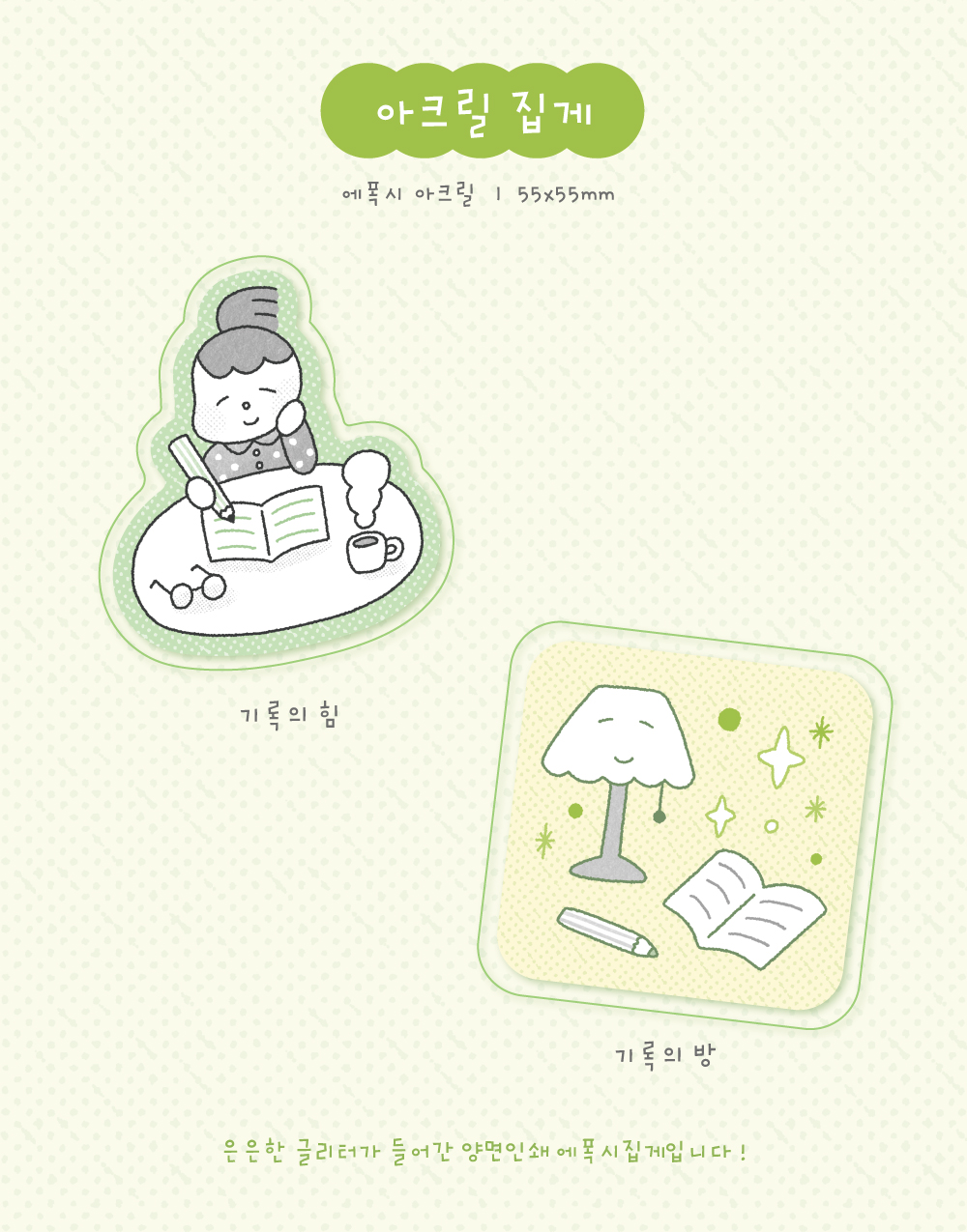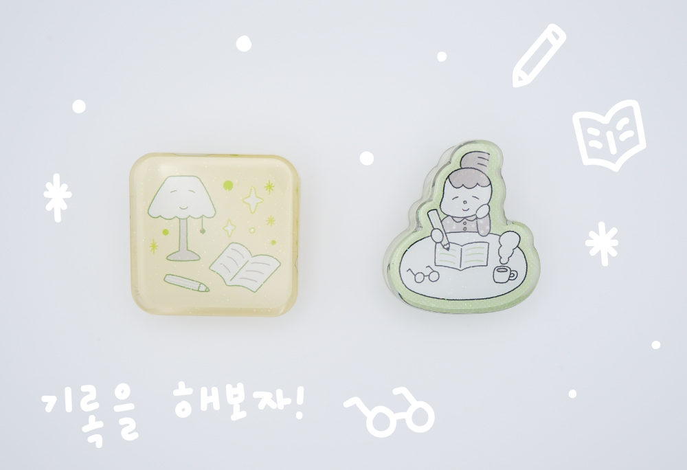 기록의 즐거움을 담은 아크릴 집게입니다.