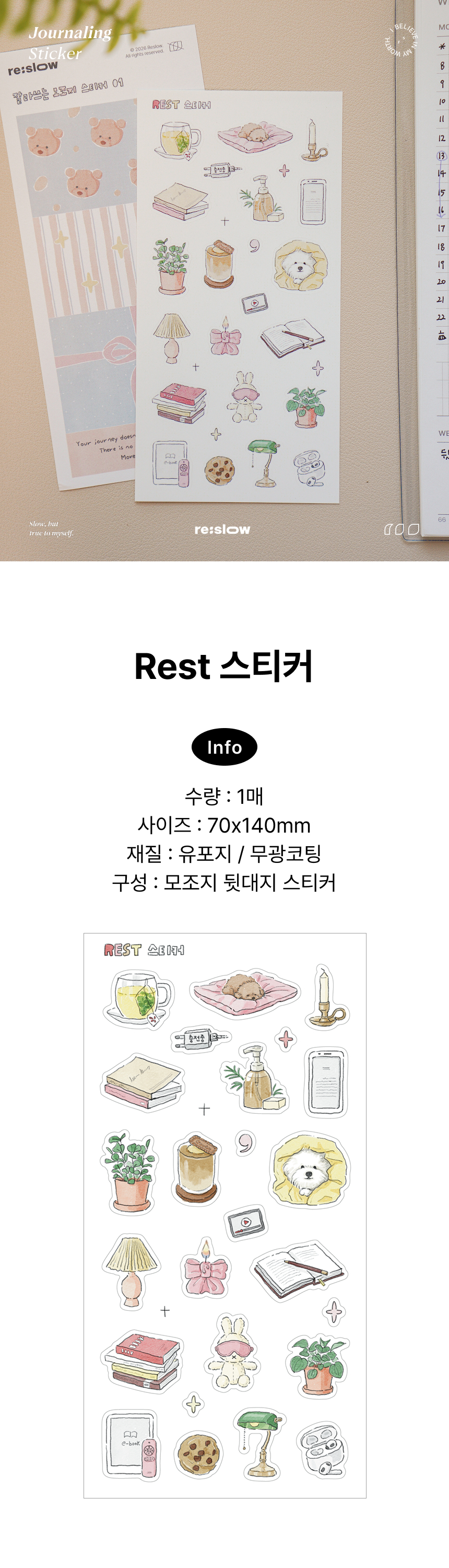 하루의 속도를 잠시 늦추는 순간들을 담은 REST 스티커예요.