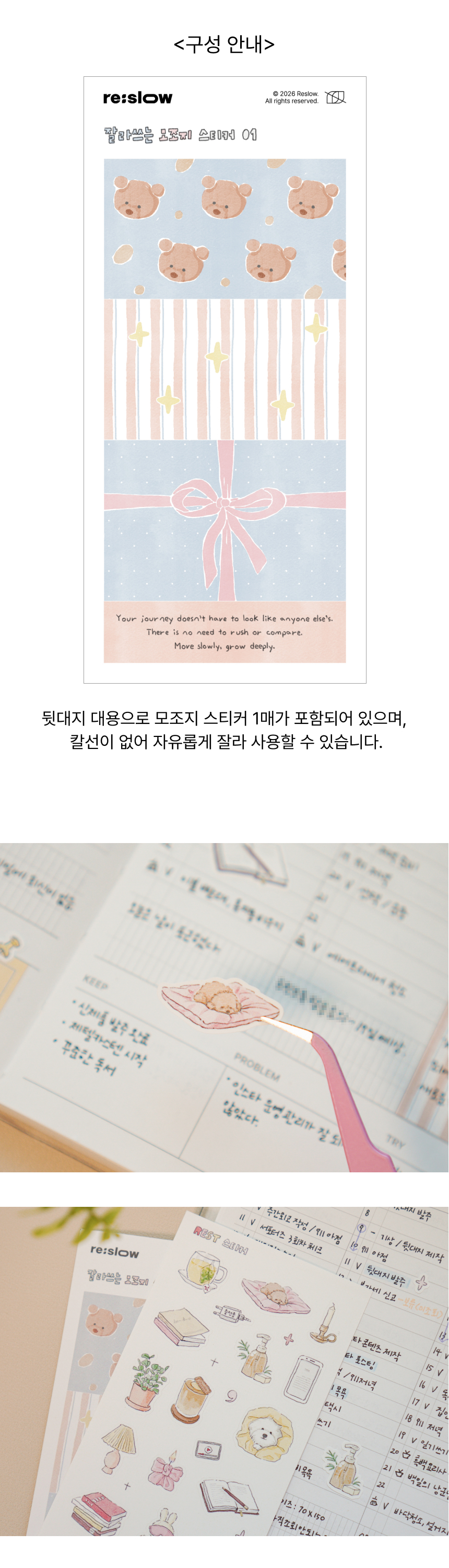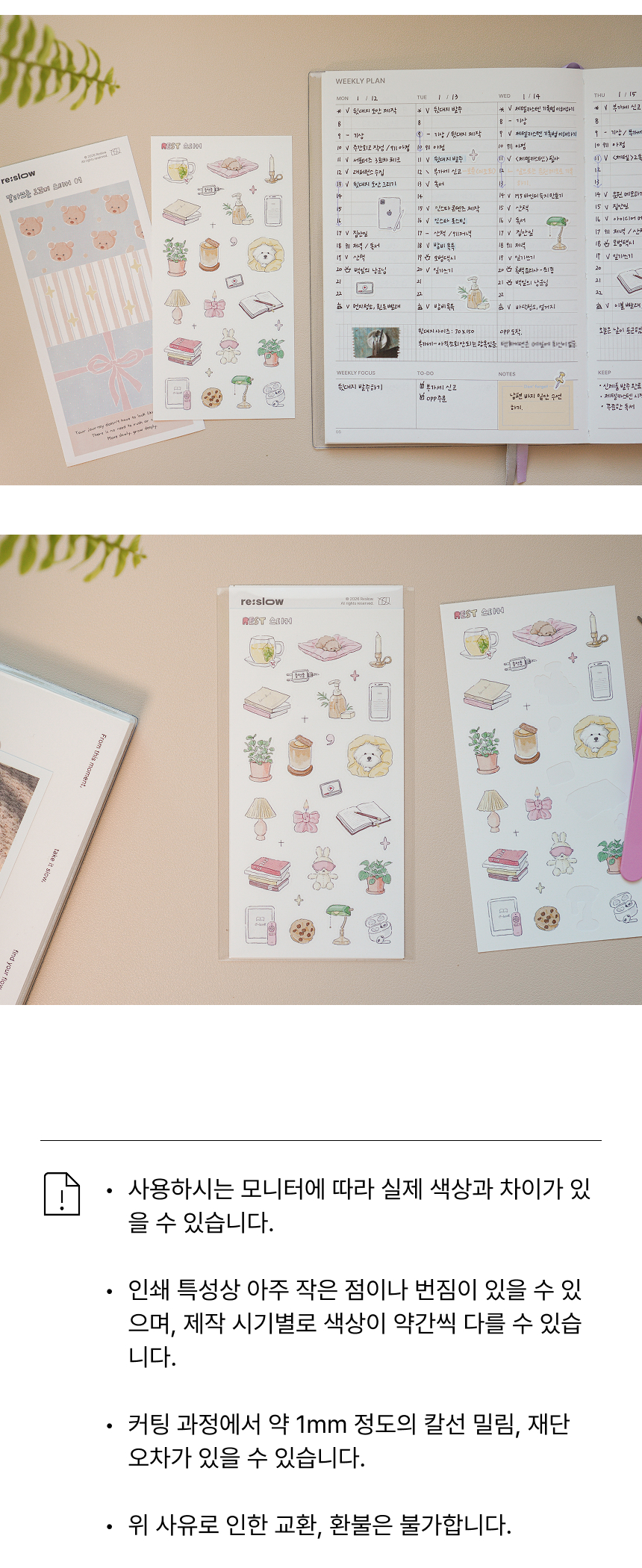 위클리와 먼슬리 페이지에 활용하기 좋은 작은 사이즈의 피스로 구성했어요.
