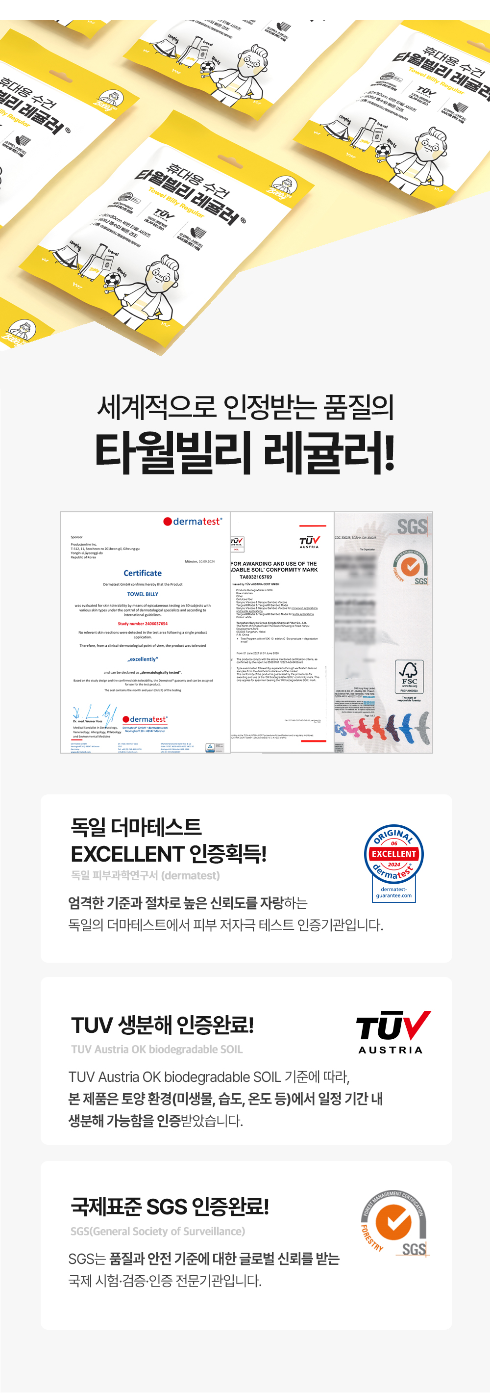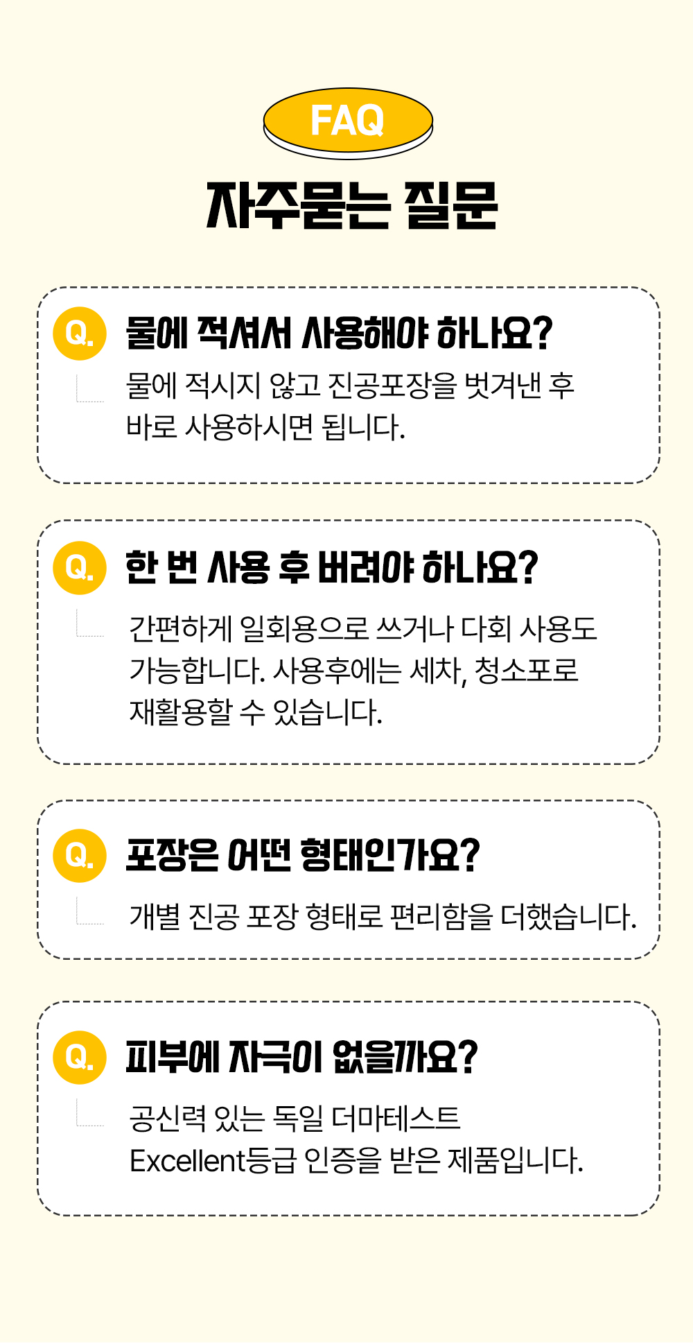 빌리 사용법 : 포장지를 뜯어 바로 사용이 가능하며, 사용 후 손세탁 및 자연 건조를 통해 재사용이 가능합니다.