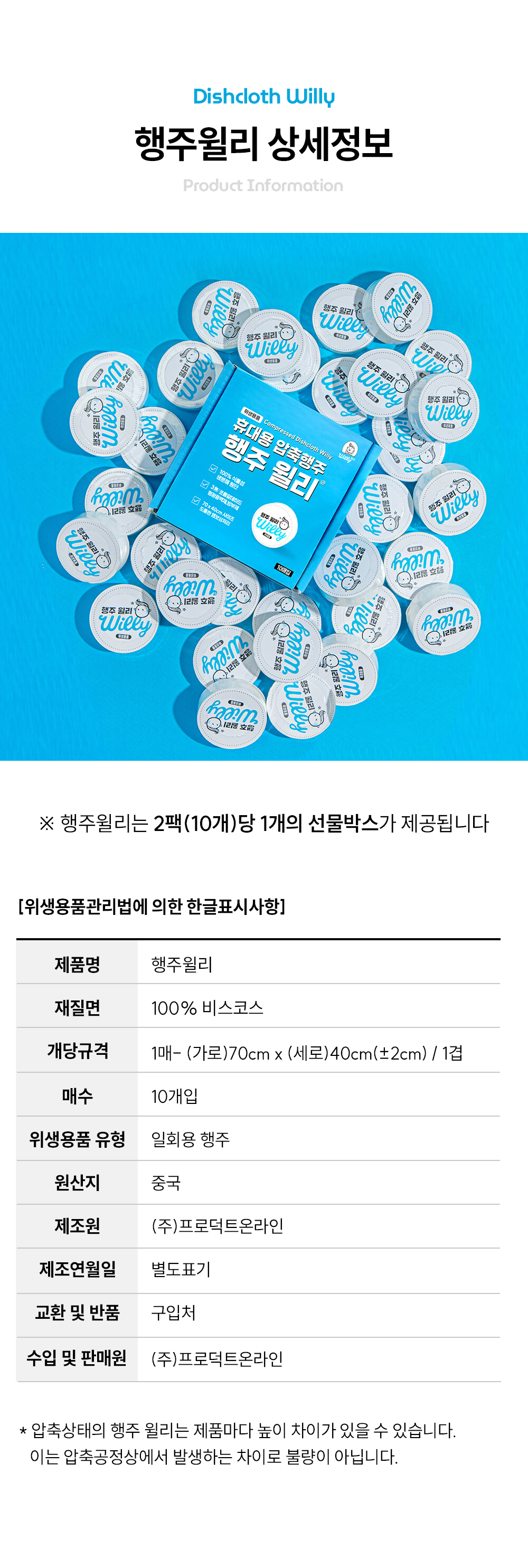 구성: 윌리 10개입 1박스