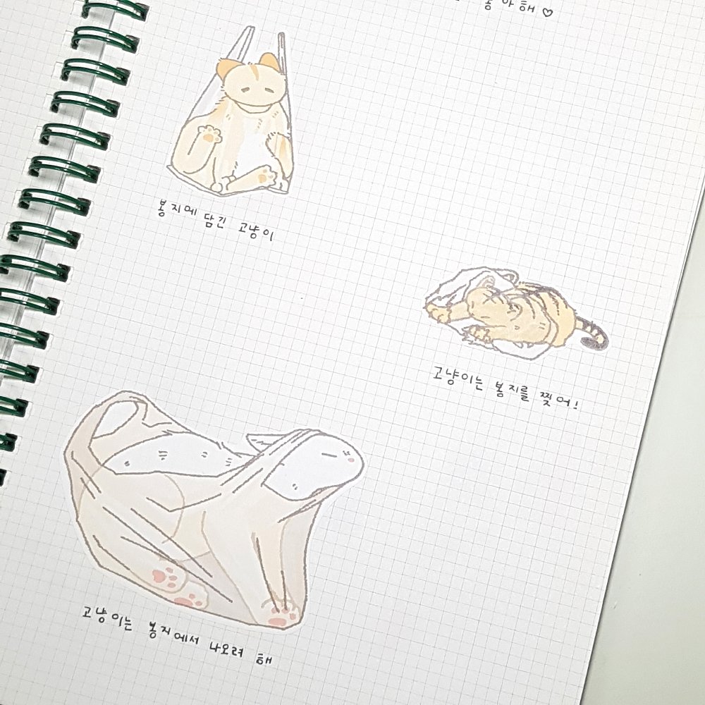 고냥이는 비닐 봉투를 찢어 모조지 스티커팩
