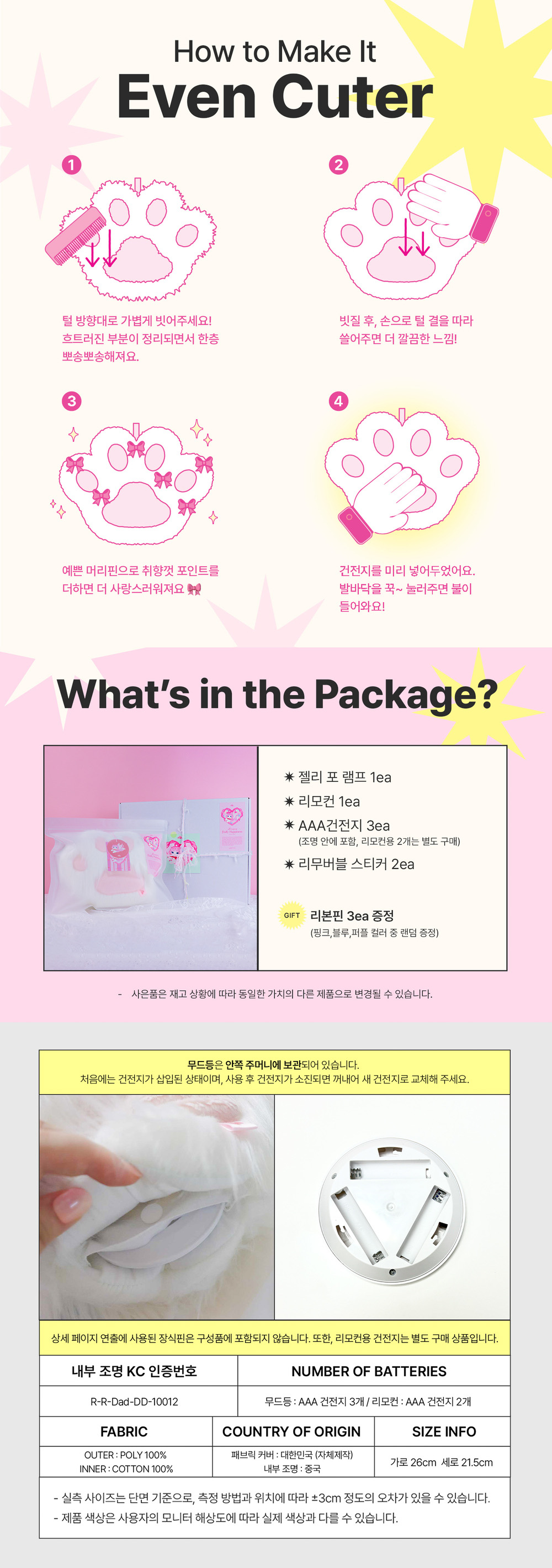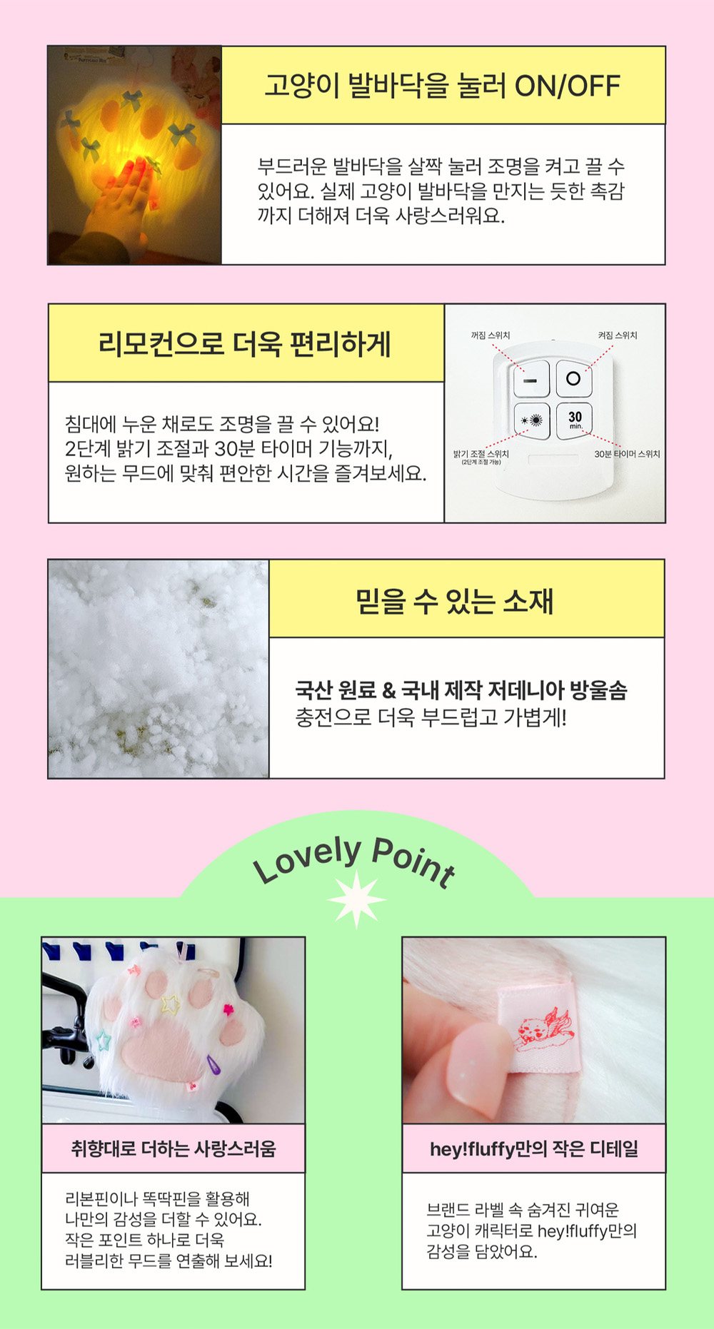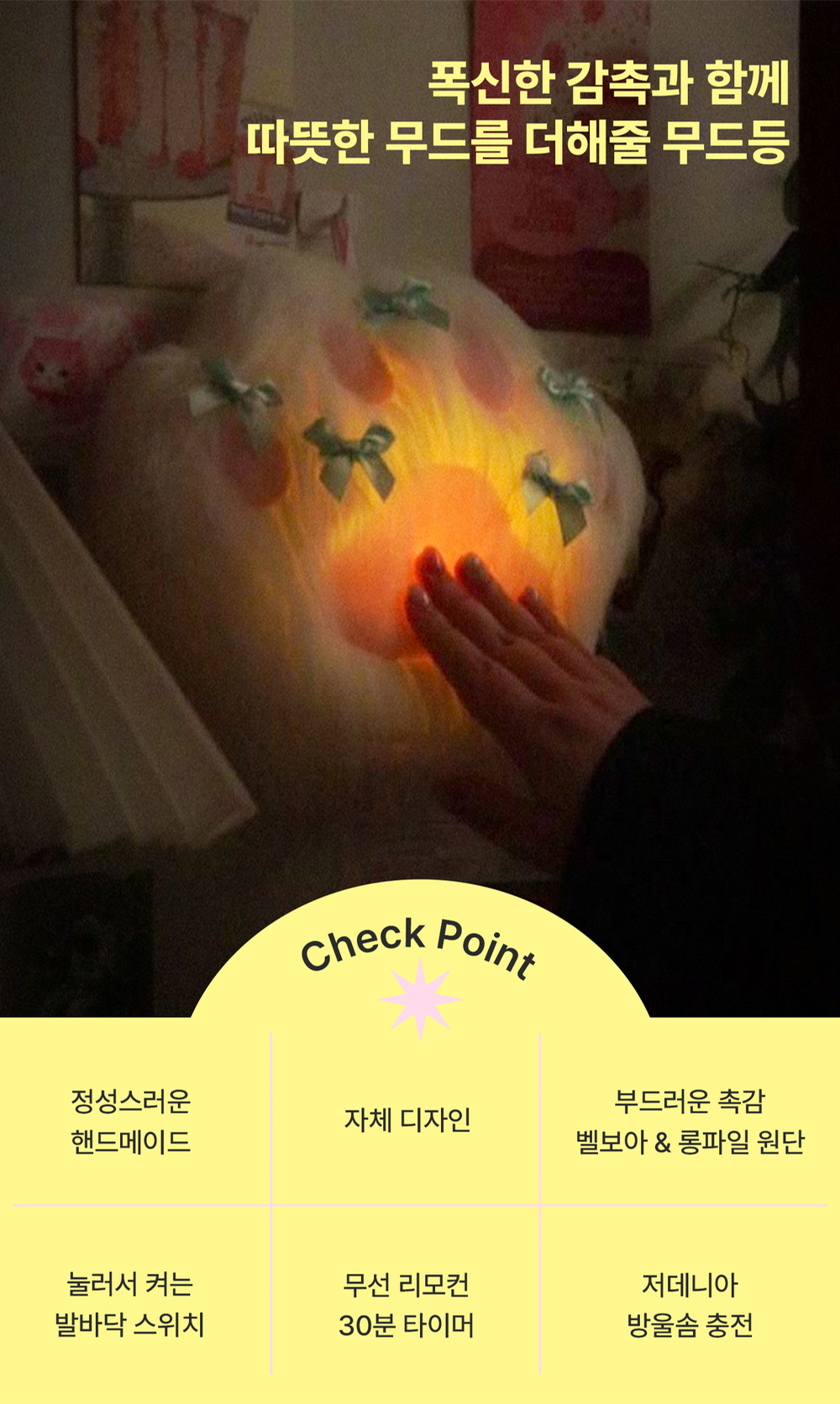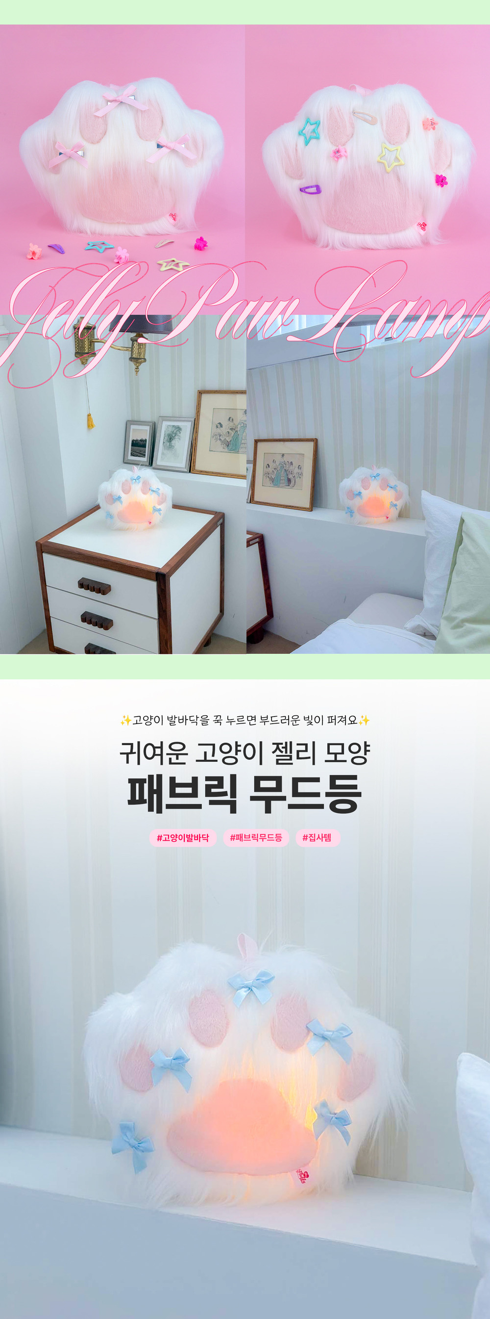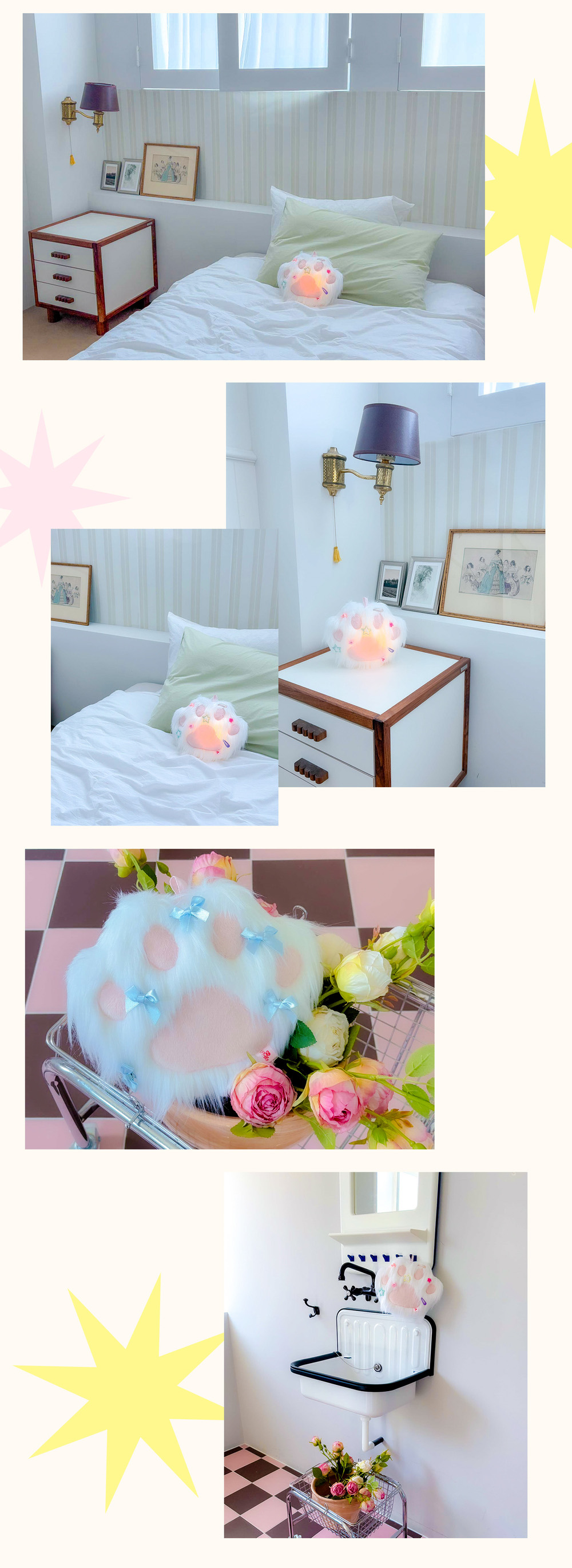 고양이 발바닥 모양의 패브릭 무드등으로 발바닥을 누르면 조명이 켜집니다.