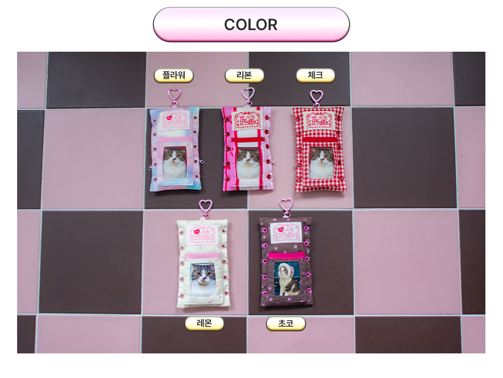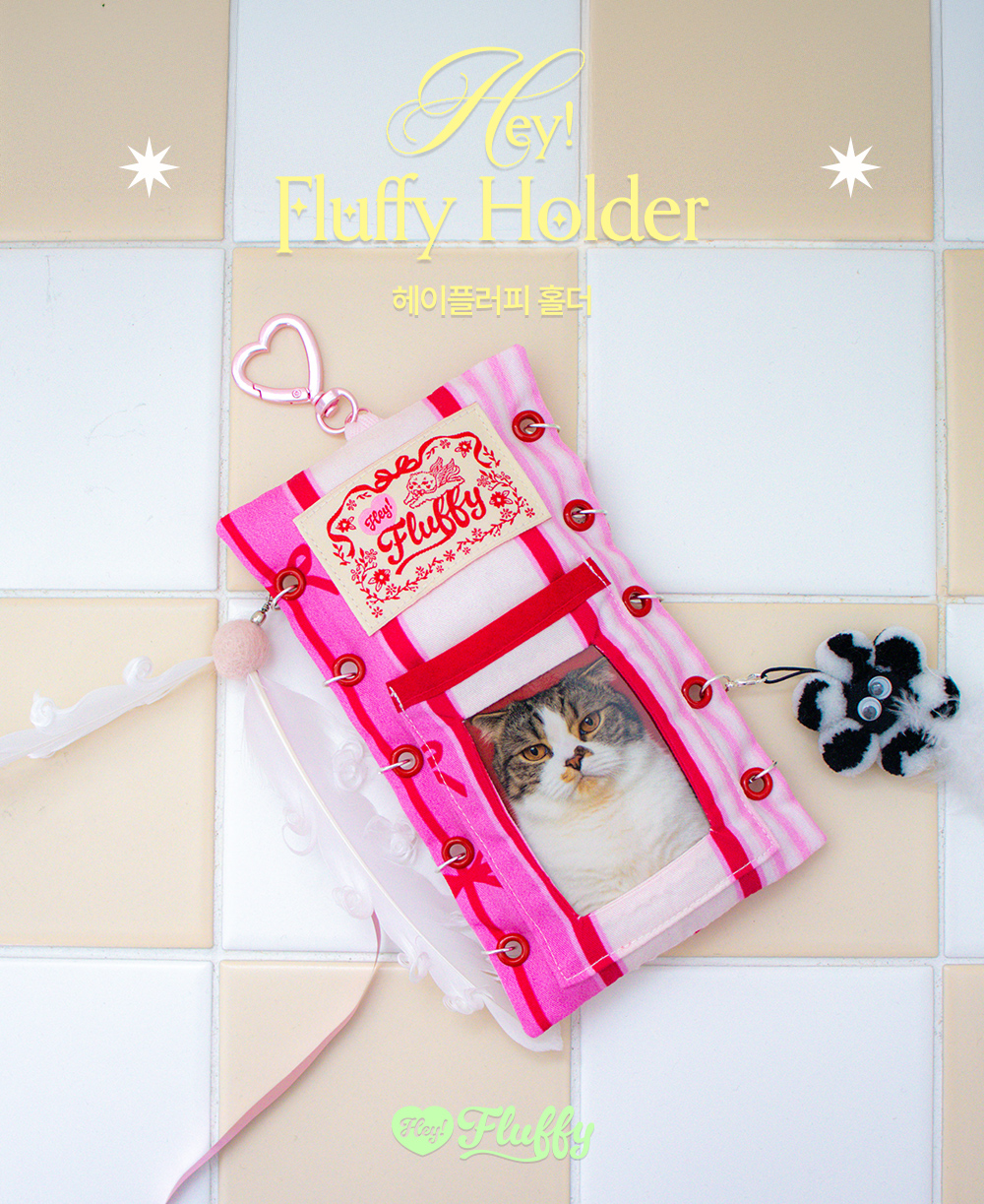 양 옆의 아일렛에 고양이 미끼 장난감이나 키링을 걸어