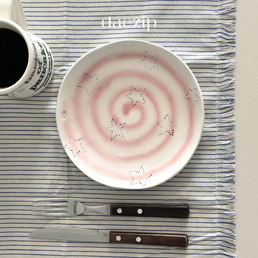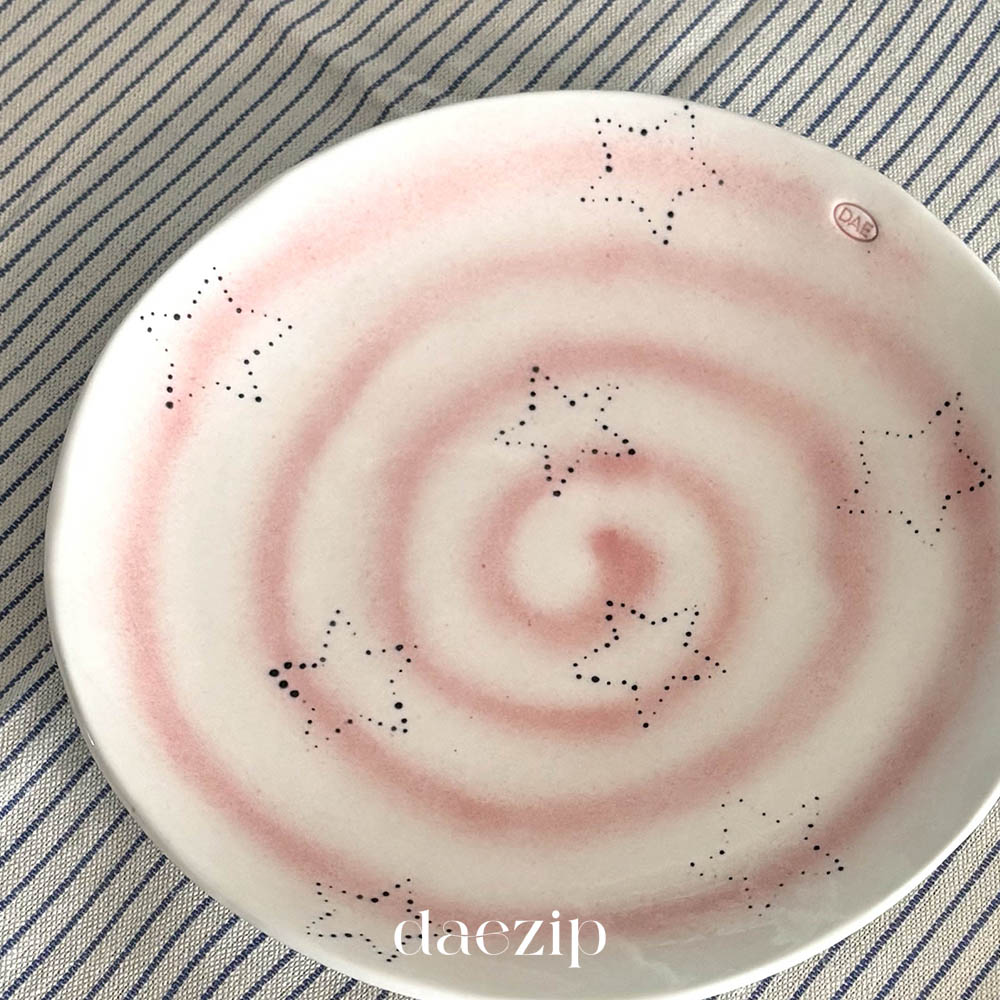 밤하늘처럼 작은 점들이 흩어져 있는 접시입니다.