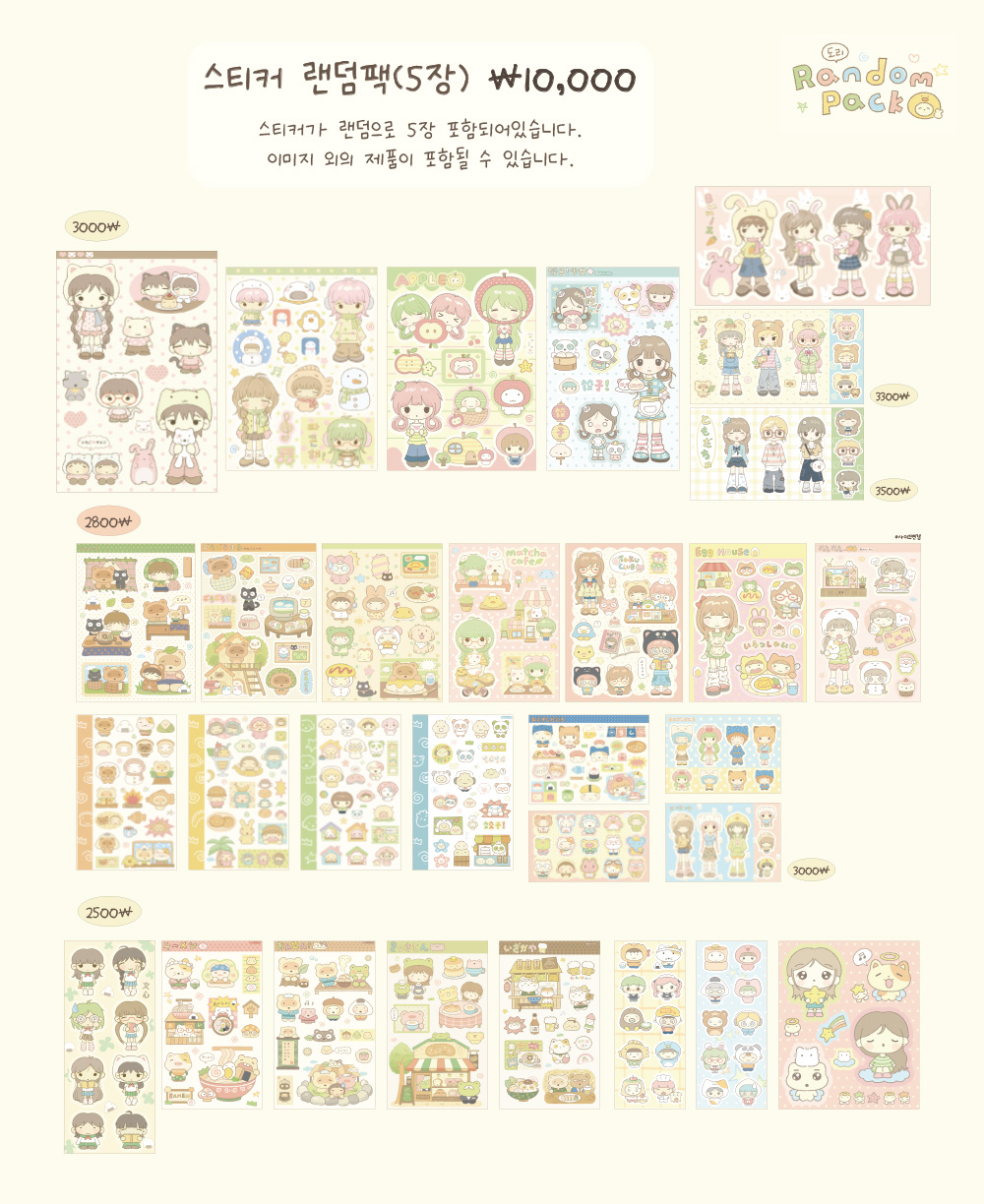 스티커가 랜덤으로 5장 들어있습니다.