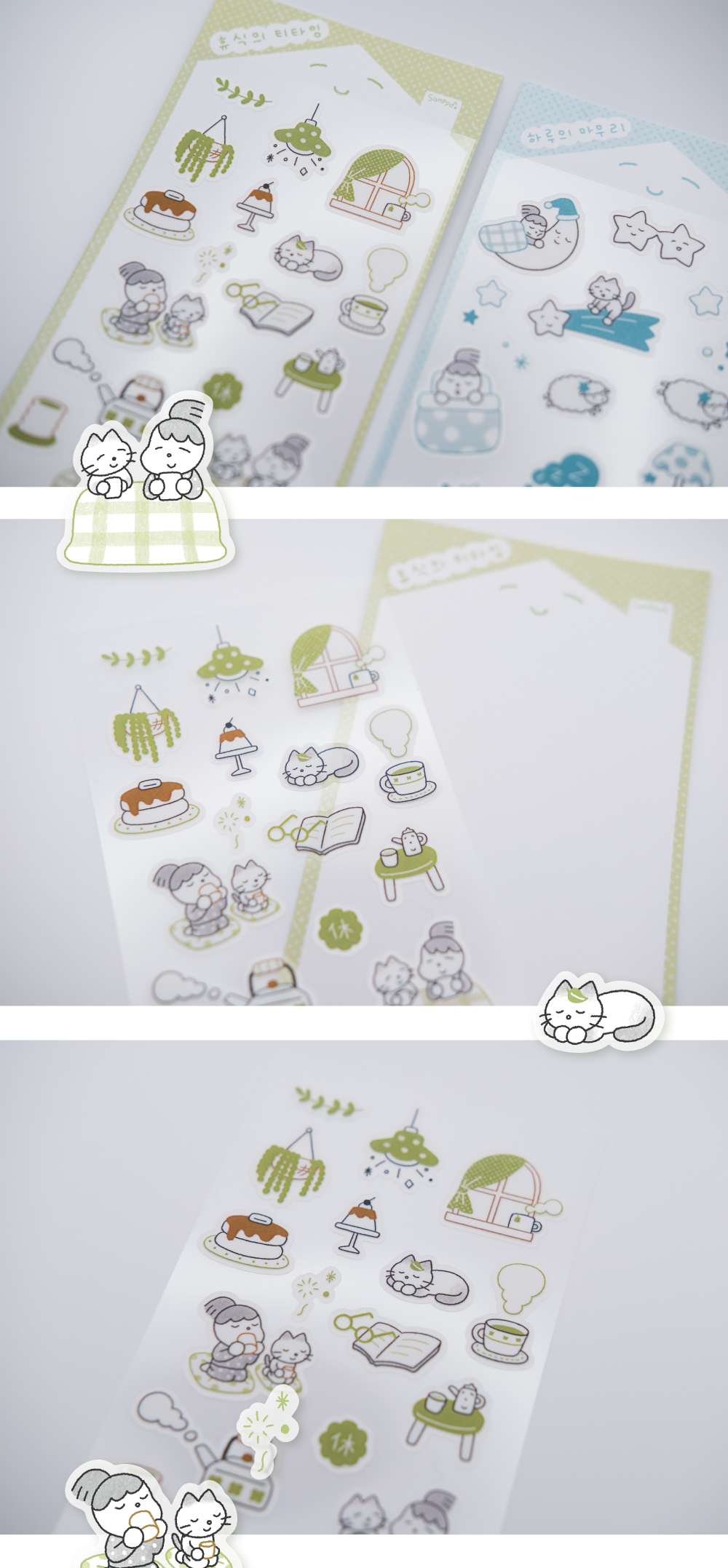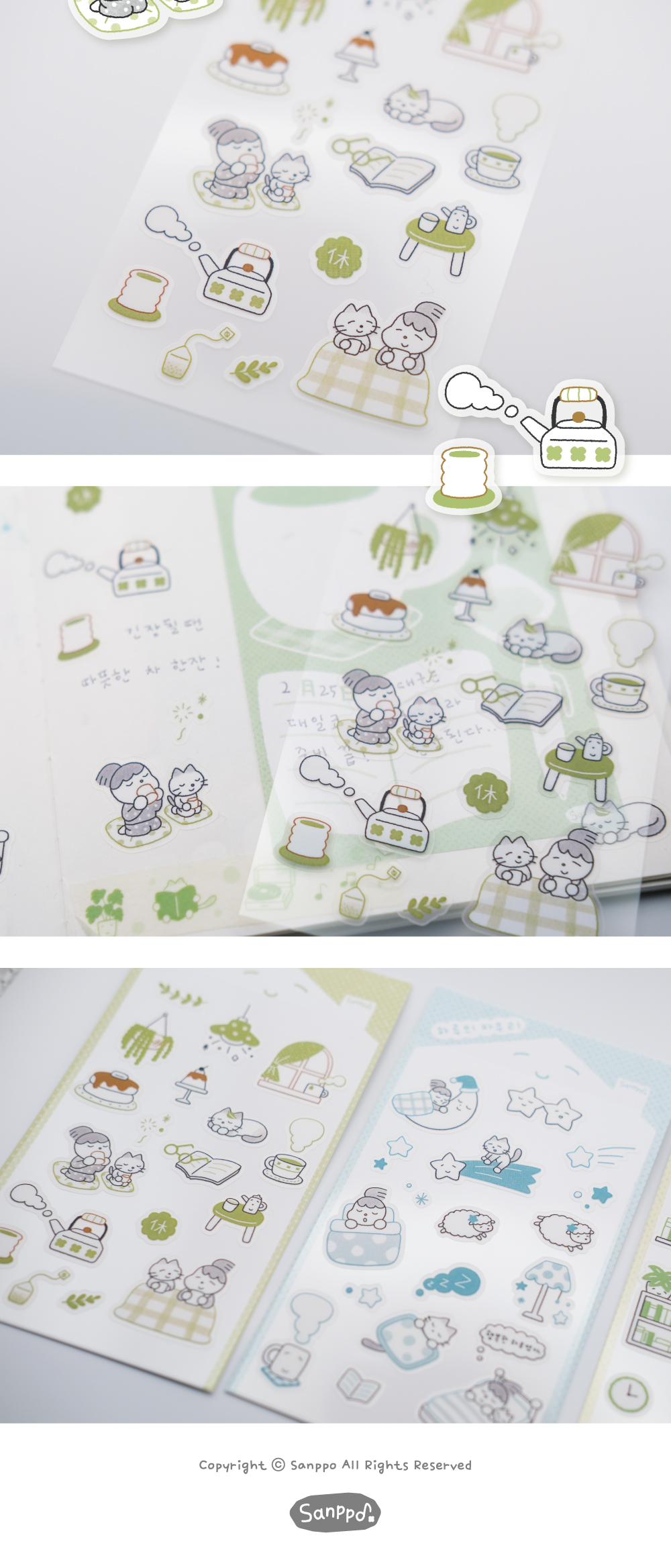 집에서 보내는 따뜻한 티타임을 담은 투명 씰스티커입니다.