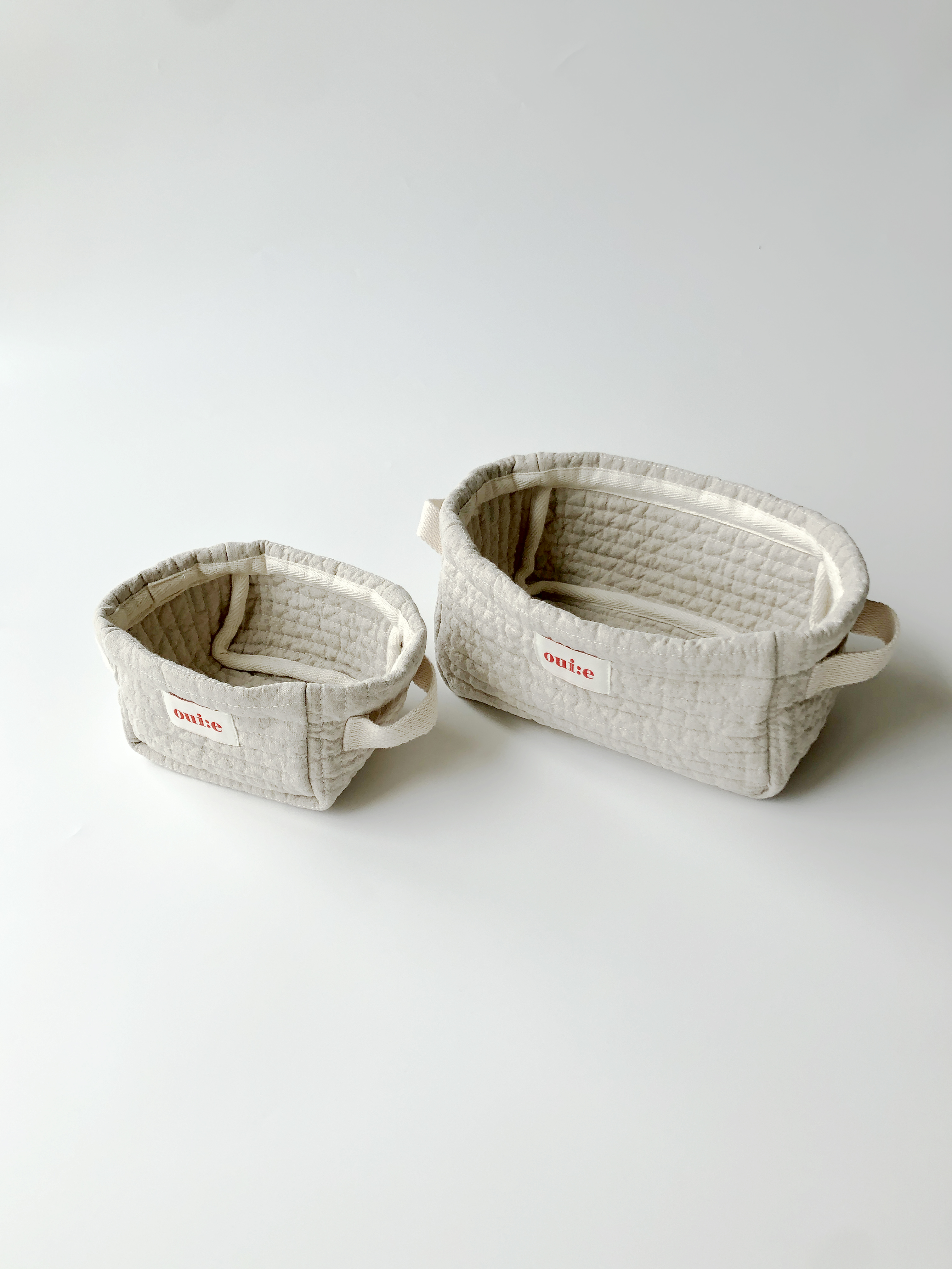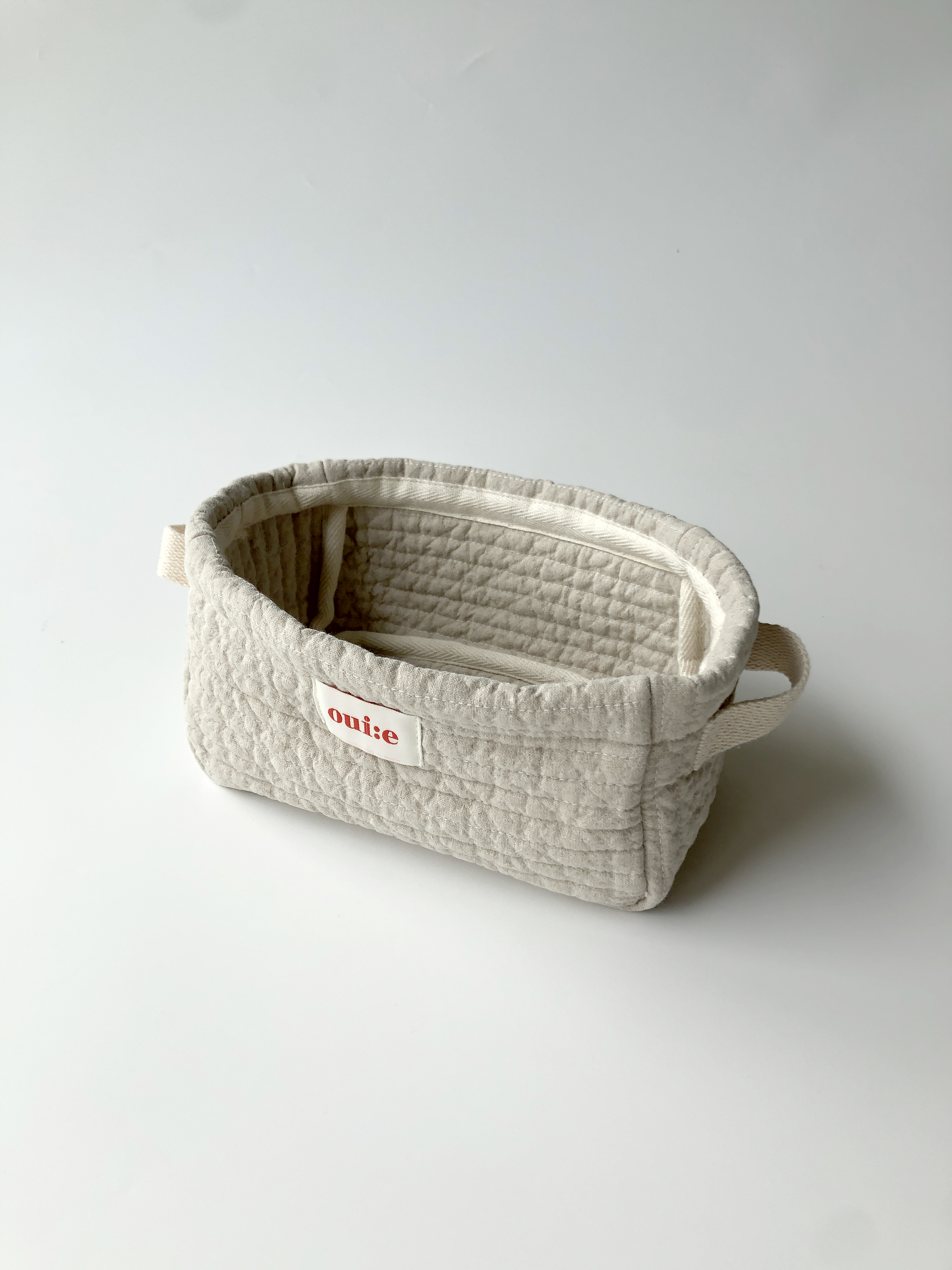 택배는 매주 월, 수, 금요일 발송됩니다. 참고바랍니다 :) [oui:e] ; 위에 어느 곳 '위에' 툭 올려두어도 분위기와 어우러질 다양한 제품군을 만나보세요. 누빔린넨소재로 제작된 바구니를 보여드릴게요. 두가지사이즈로 제작된 바구니는 컵코스터, 행주, 손수건 외 다양한 소품들을 보관할 수 있어요. 양쪽 손잡이가 달려있고, 로고라벨이 포인트가 된 심플하고 귀여운 바구니예요. 면린넨혼방 누빔소재로 약간의 잡사가 섞여있을 수 있으며, 수제품 특성상 사이즈는 약간의 오차가 있을 수 있습니다. [상세사진] |