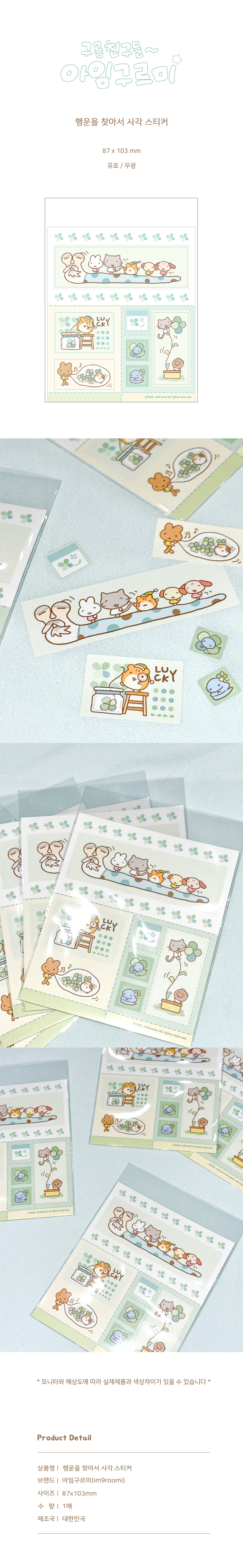행운을 찾아서 사각 스티커 - 87x103mm