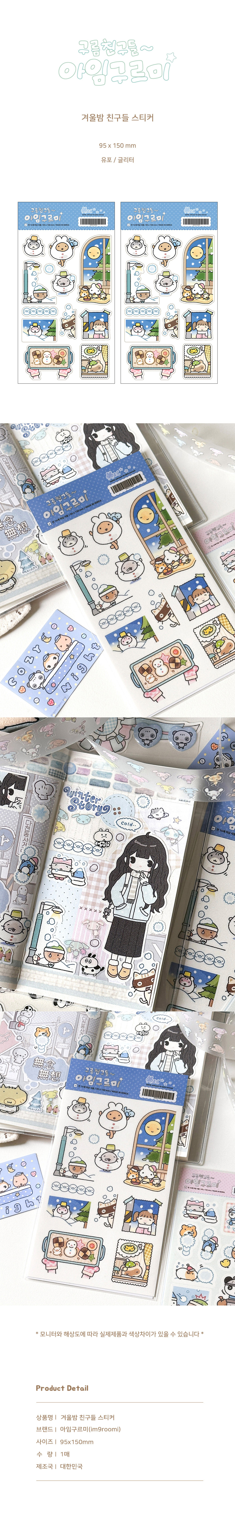 겨울밤 친구들 스티커 - 95x150mm