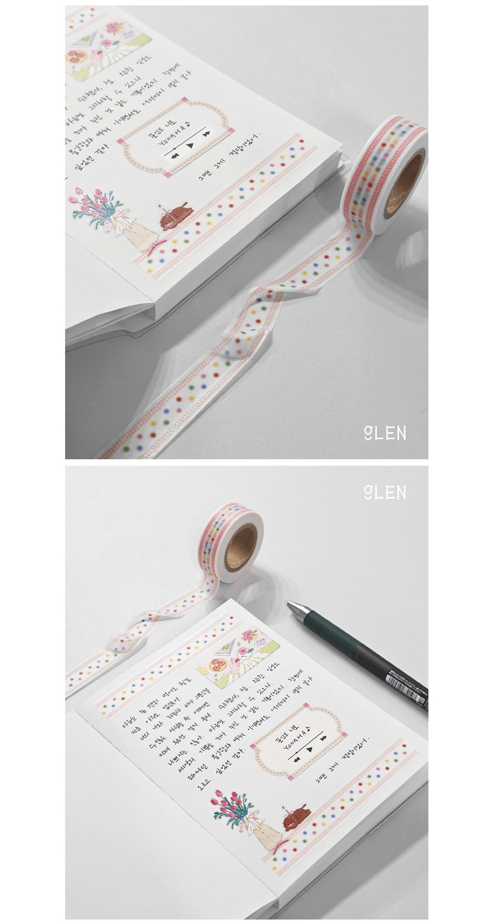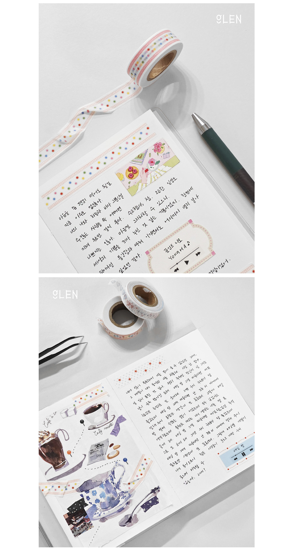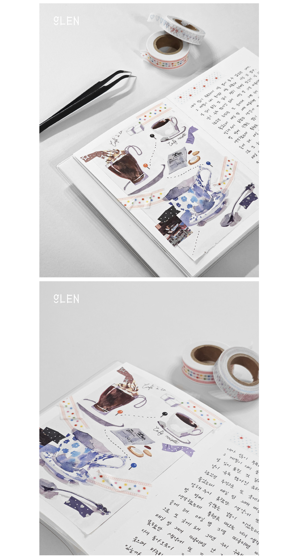 스크랩을 하거나 포장을 하거나 다양하게 사용할 수 있는 마스킹 테이프입니다.