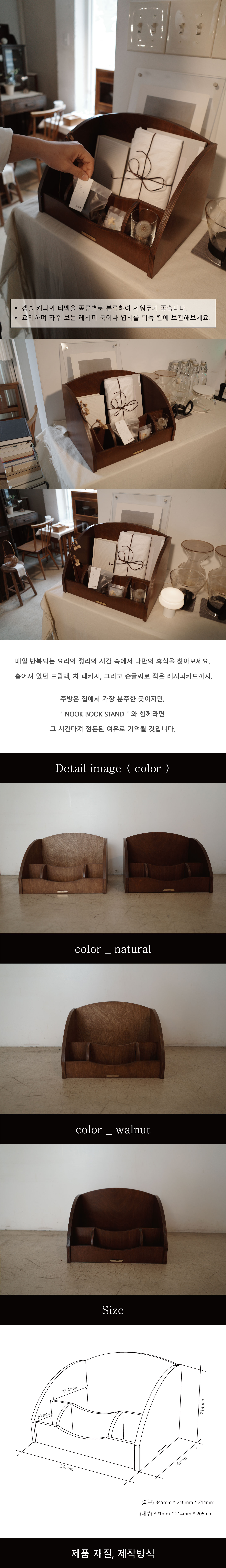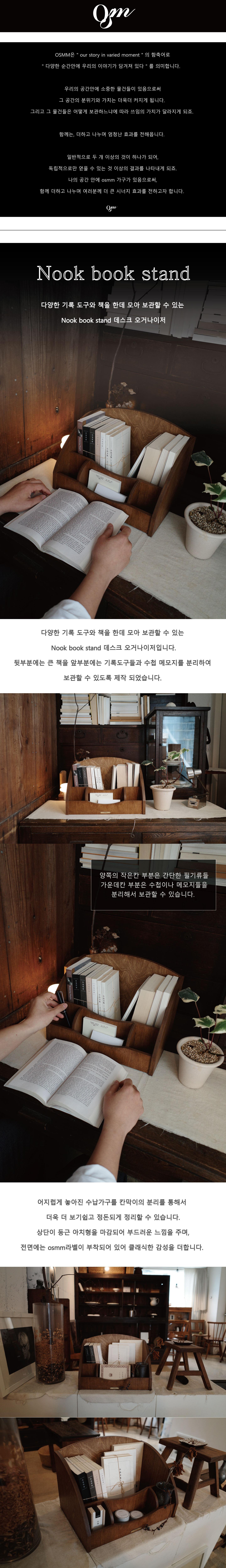 다양한 기록 도구와 책을 한데 모아 보관할 수 있는 Nook book stand 데스크 오거나이저 입니다.