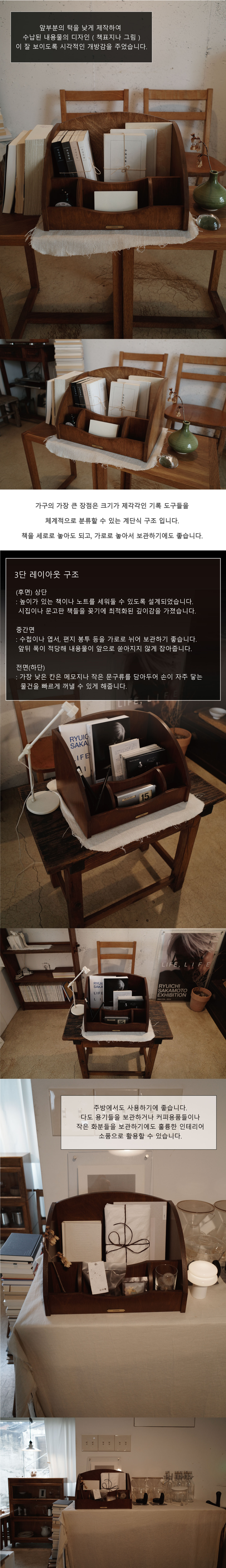 뒷부분에는 큰 책을 앞부분에는 기록도구들과 수첩 메모지를 분리하여 보관할 수 있도록 제작 되었습니다.