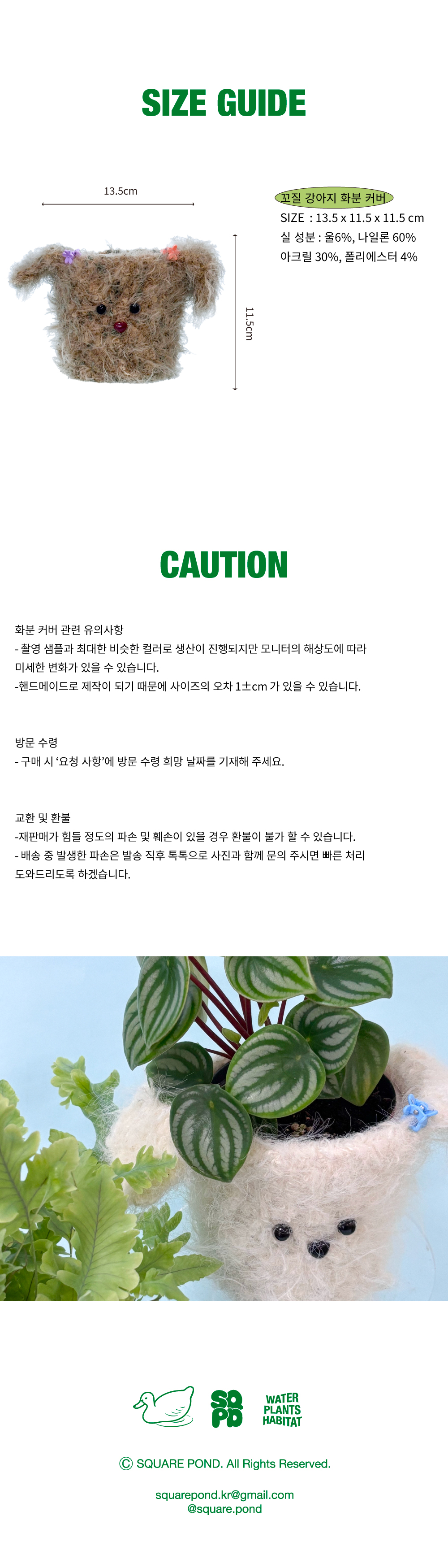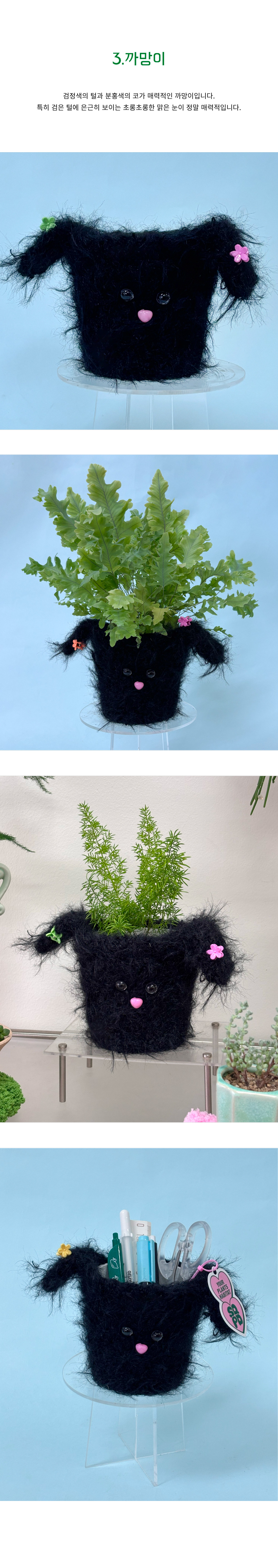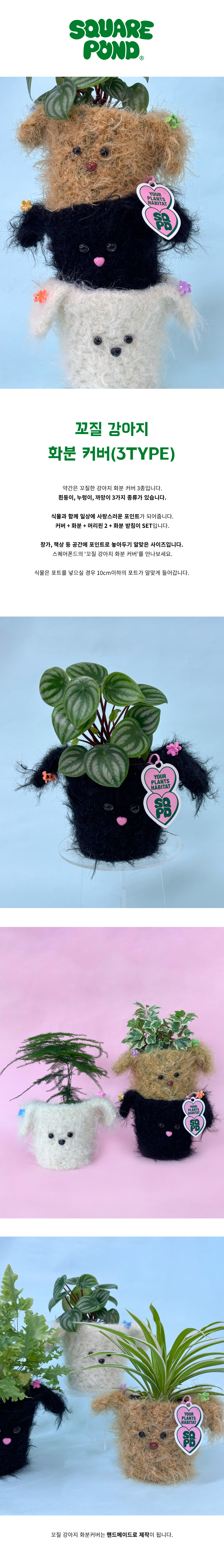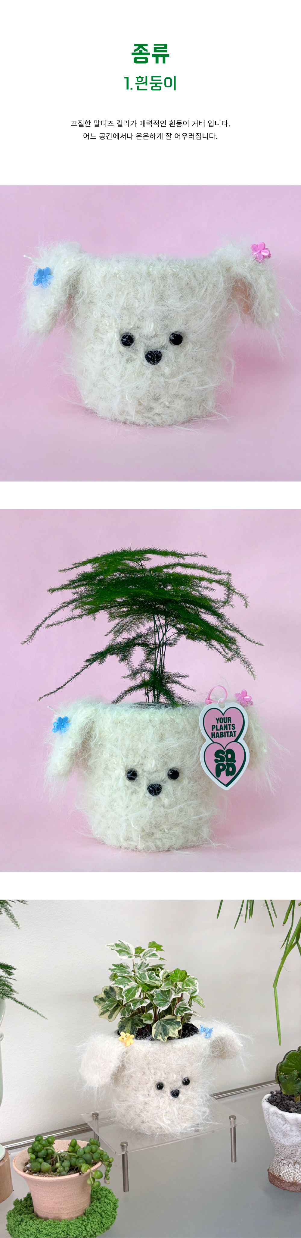 약간은 꼬질한 강아지 화분 커버 3종입니다.흰둥이, 누렁이, 까망이 3가지 종류가 있습니다.