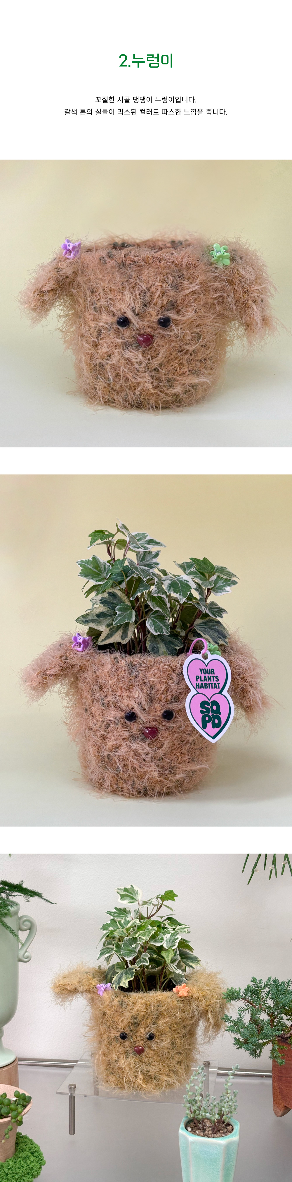 식물과 함께 일상에 사랑스러운 포인트가 되어줍니다. 커버 + 화분 + 머리핀 2 + 화분 받침이 SET입니다.